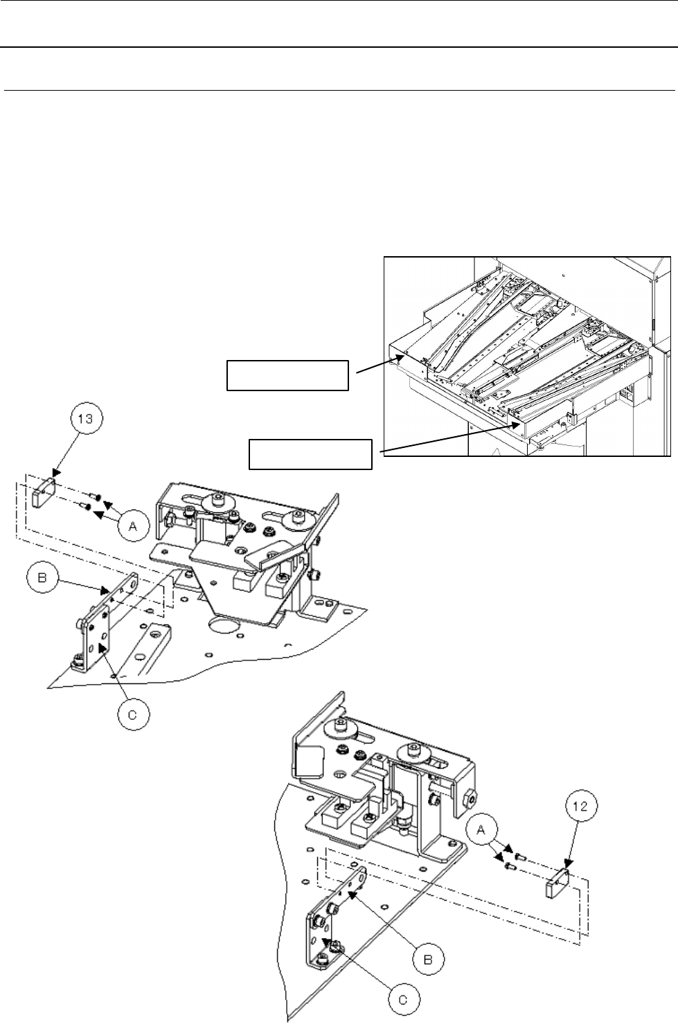 请拆下托架固定螺丝(A),从 YTABLEC(B)、YTABLEL(C)、YTABLER(D)上连同托架一起拆下各