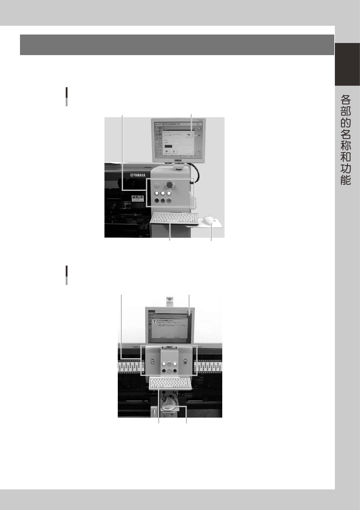 主机的正面和背面 ( 背面的为选项装置 ) 有操作机器、输入数据时使用的操作面板按钮、键盘、鼠标等装备。
