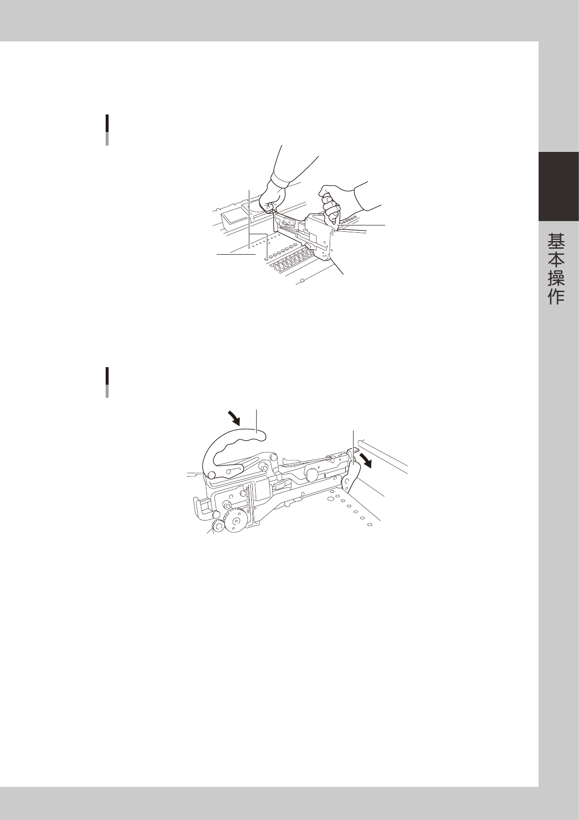在提起锁定杆固定把手的状态下,提起送料器的前端和把手,从正上方水平的安装在送料器架上。送料器