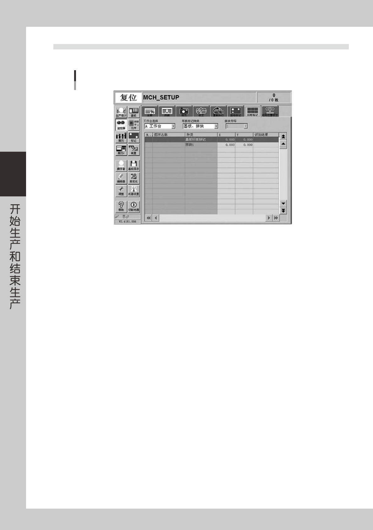 3-16 3 3 .7 坏 板标 记 显 示 「 基 板、 拼 块 」 「 局 部」 等坏 板标 记 的 识 别 结 果 。 监控屏 坏板标记 26 3 1 4- M 2 -0 0 · X、Y 显 示 基 板 程 序 的 输入值 ( 该值参 考了拼 块 位 移量 ) 。 · 识 别 结 果 根 据 实 际 标 记 的 识 别 结果 进 行 「 O K 」 或 「 N G 」的 判 断。 O K ∶ 坏 板 标 记 识 别…