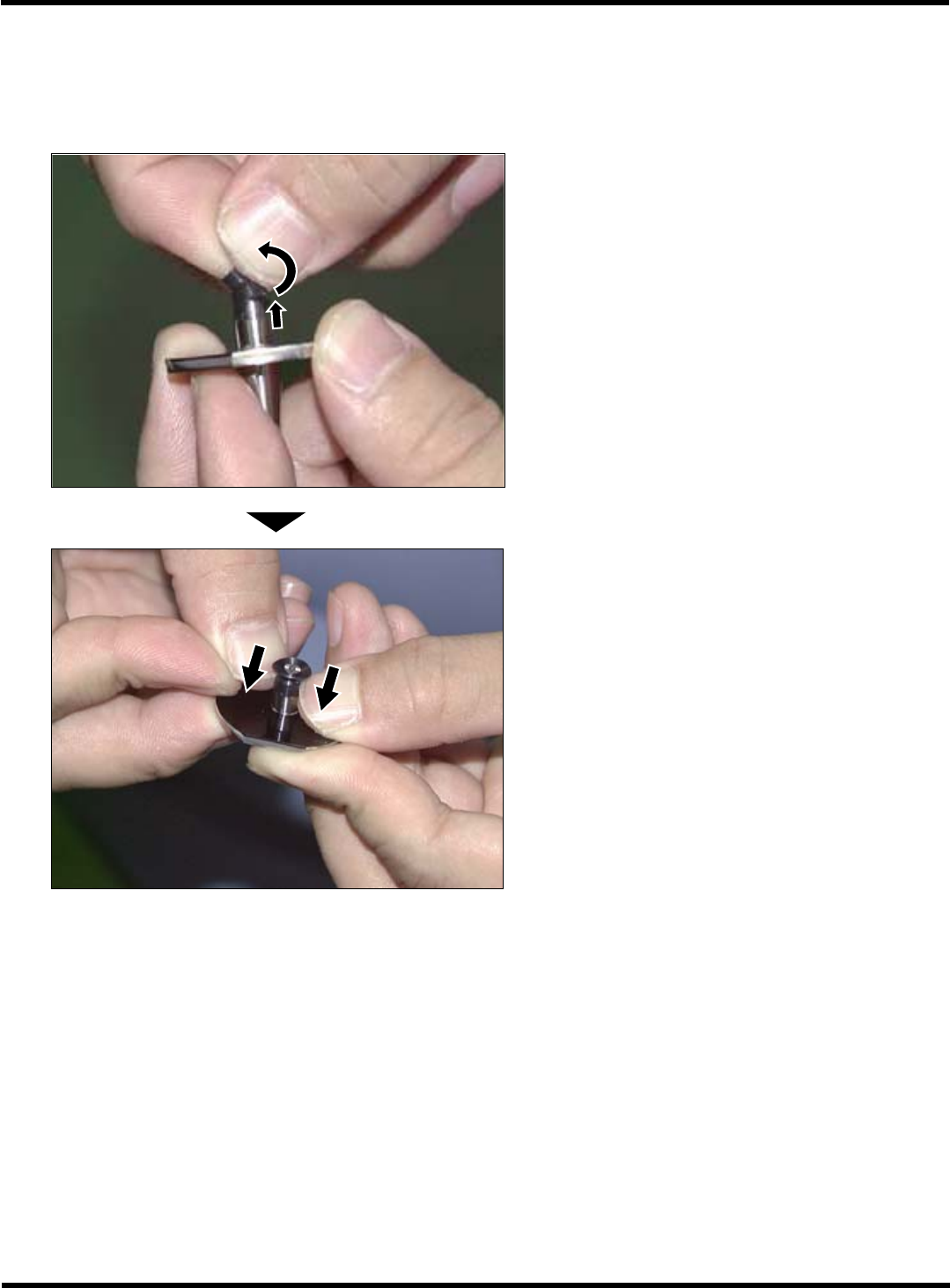 CM602-L 维修手册 1.6 560 小时检查一次 [ 每月一次 ] Page 1-117 吸着垫圈的更换 为了稳定地吸着部品, 有的吸嘴上装有合成橡胶的吸着垫圈。 当吸着垫圈上出现伤 痕或裂纹时, 应 更换吸着垫圈或吸嘴自身。 ( 作为标准规格机器使用的是 #1004 和 #1005 吸嘴 ) 1. 卸下受损的吸着垫圈。 2. 安上新的吸着垫圈。 433C-066P 433C-065P EJM8A-C-MMC01-A04-01