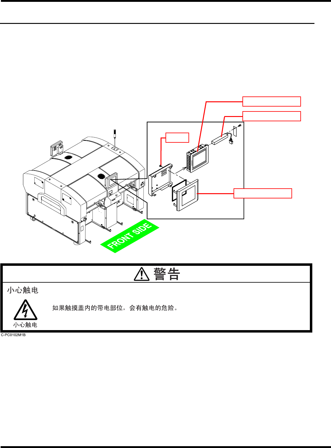 CM602-L 维修手册 1.10 消耗零件的更换 Page 1-149 背光灯的更换步骤 要求 由于背光灯受撞击或扭转容易破损,所以使用时请注意。 1. 将电源开关置于 OFF (O) 状态的同时空 气供给也要停止。 ∗ 请将电源开关和主空气阀上锁。 2. 拆卸彩色接触面板盖后面的螺丝,然后取 下彩色接触面板的盖。 3. 卸下一处 M3 埋头螺丝,取下背光灯更换 用门箱 ( 板金 ) 。 下一页 EJM4A-132E EJM8A-…