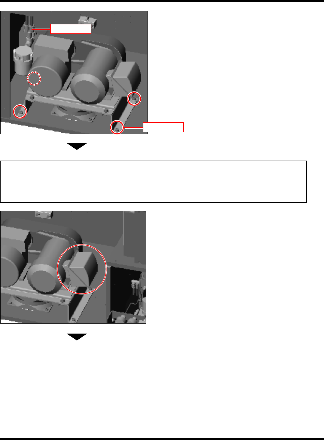 CM602-L 维修手册 1.10 消耗零件的更换 Page 1-178 3. 取下与真空泵连结的管 ( 黑色、 2 根 ) 。 4. 卸下固定真空泵基础的螺栓 (4 支 ) 。 通知 在打开配电部位之前,一定要事先确认机器主机的电源是否处于 OFF 状态。 拆卸连接在配电部位的配线 (4 根 ) 。 请注意不要弄错配线的顺序。如果弄错顺序,将会造成真空泵电极逆旋转的原因。 5. 打开真空泵的配电部位 ( 左图框内 ) 。 6. 拆卸真…
