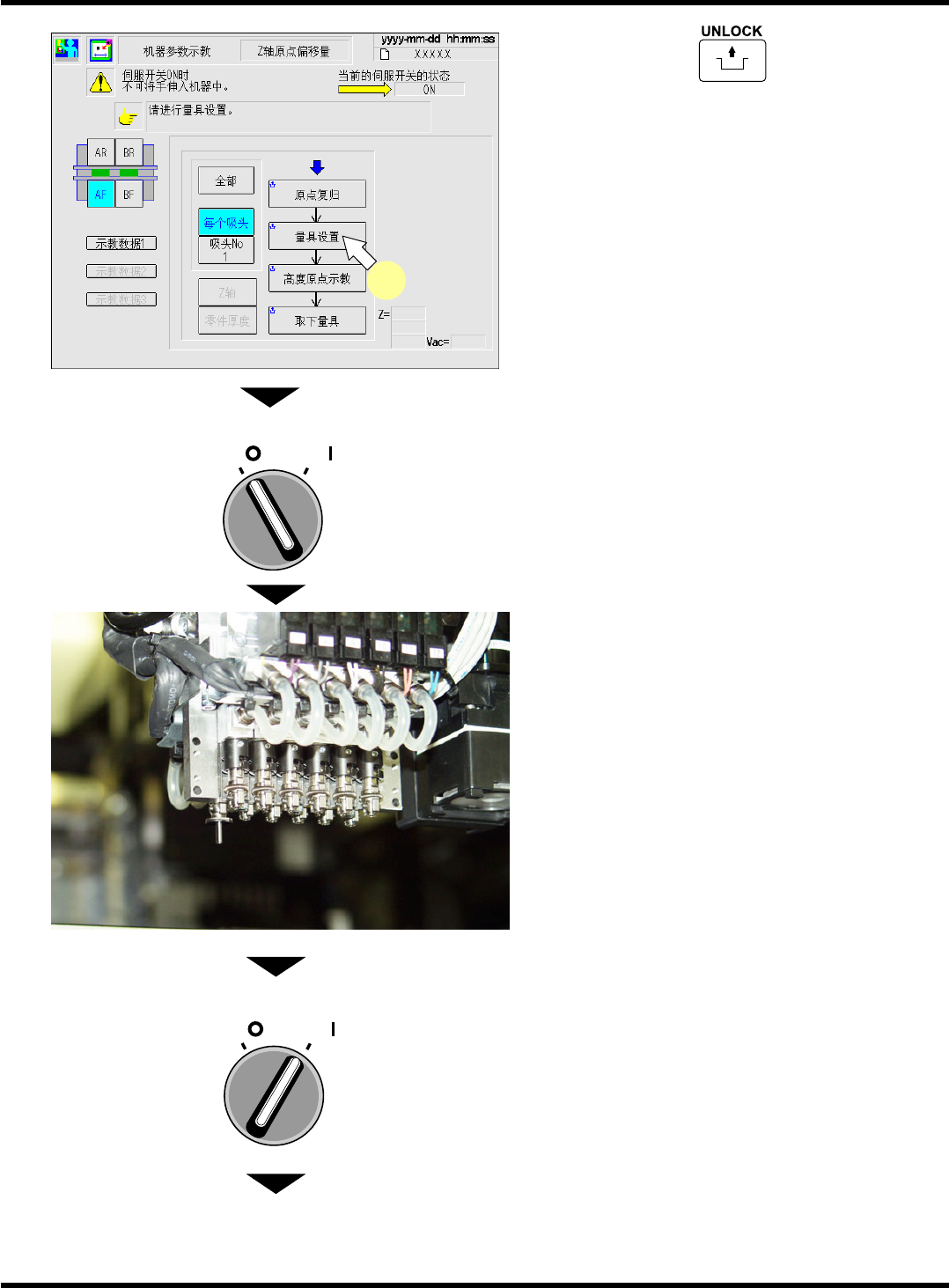 在画面上所显示的吸嘴位置上安装吸嘴。