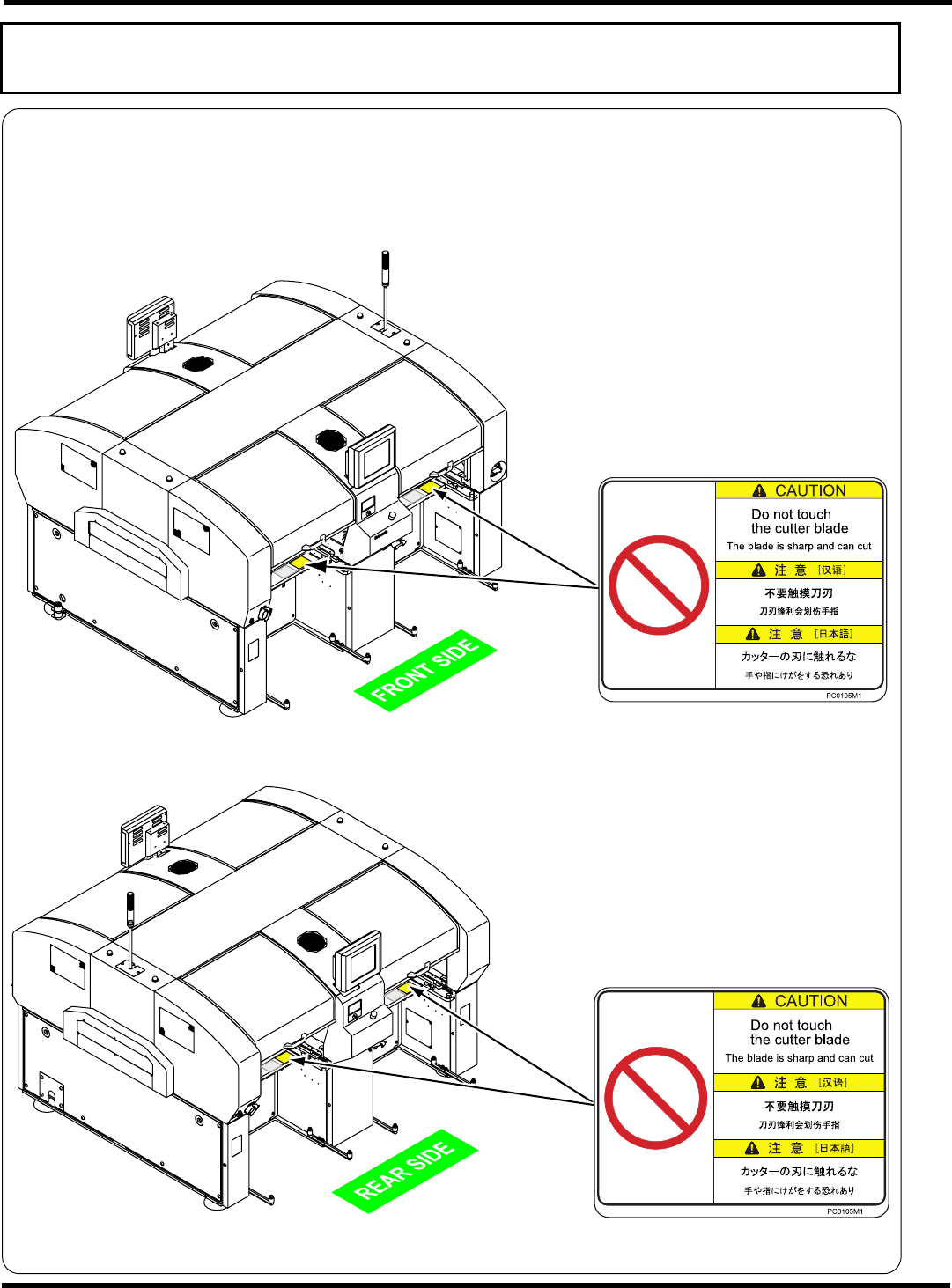 右侧延长传送带部警告显示标牌粘贴位置