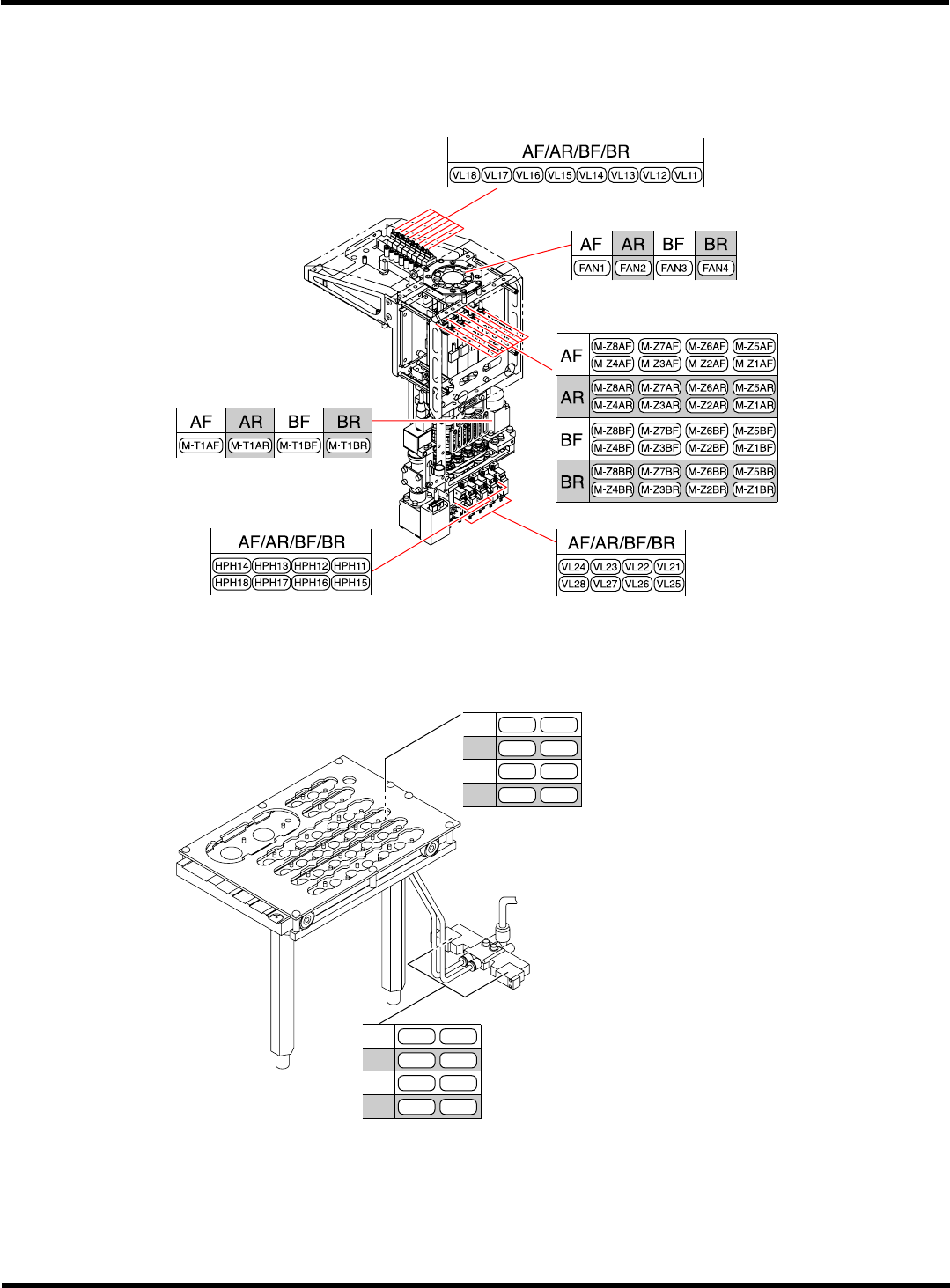 CM602-L 维修手册 3.3 负荷配置图 Pa ge 3-61 3.3.3 通用吸头 (8 吸嘴 ) A) 标准 移载吸头 ( 通用吸头规格 ) 吸嘴交换器 ( 通用吸头规格 ) EJM8A- C-MMC03-A 02-01 EJM4A -408E LS236 LS235 LS436 LS435 LSB36 LSB35 LSD36 LSD35 AF AR BF BR VL231 VL230 VL431 VL430 VLB31…