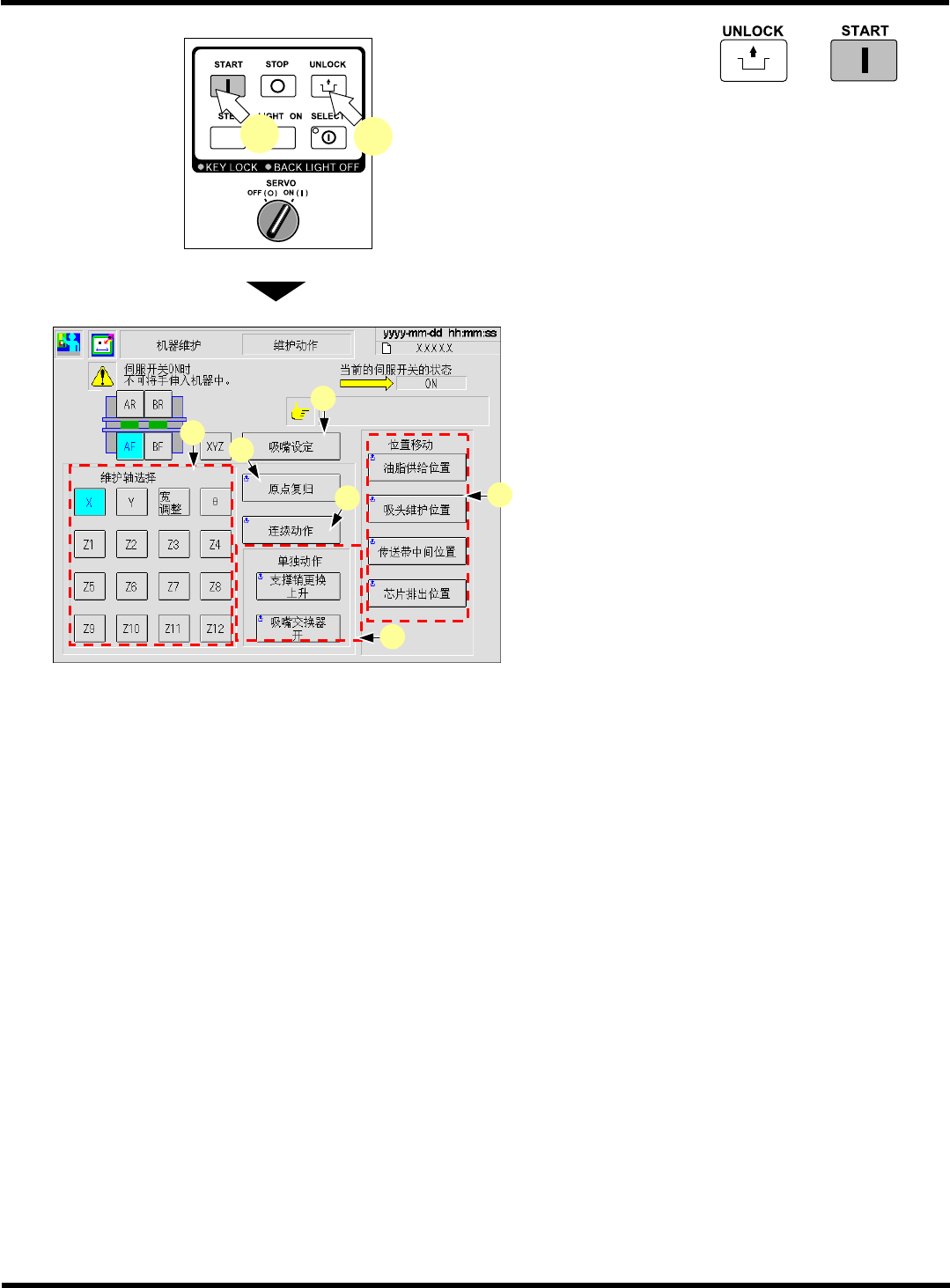 在本机器的主体程序上设定了维护动作功能。用户利用该功能可以方便、快捷地进行机器的清扫、