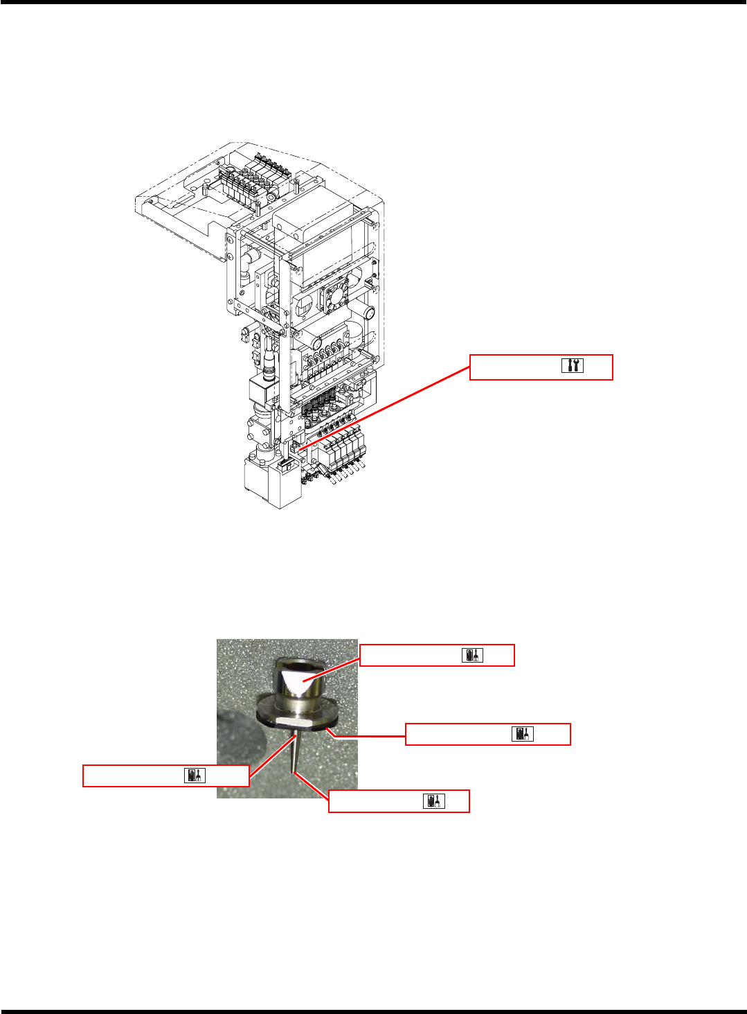 CM602-L 维修手册 1.1 维护的概要 Pa ge 1-21 < 高速吸头 (12 吸嘴 )> 1. 移载吸头 2. 吸嘴 ( 选购件 ) 0EJM4A-152E 空气路径 EJM4A -077P 吸嘴锥形面 吸嘴尖端部 吸嘴内部 吸嘴反射板 EJM8A- C-MMC01- A01-0 0