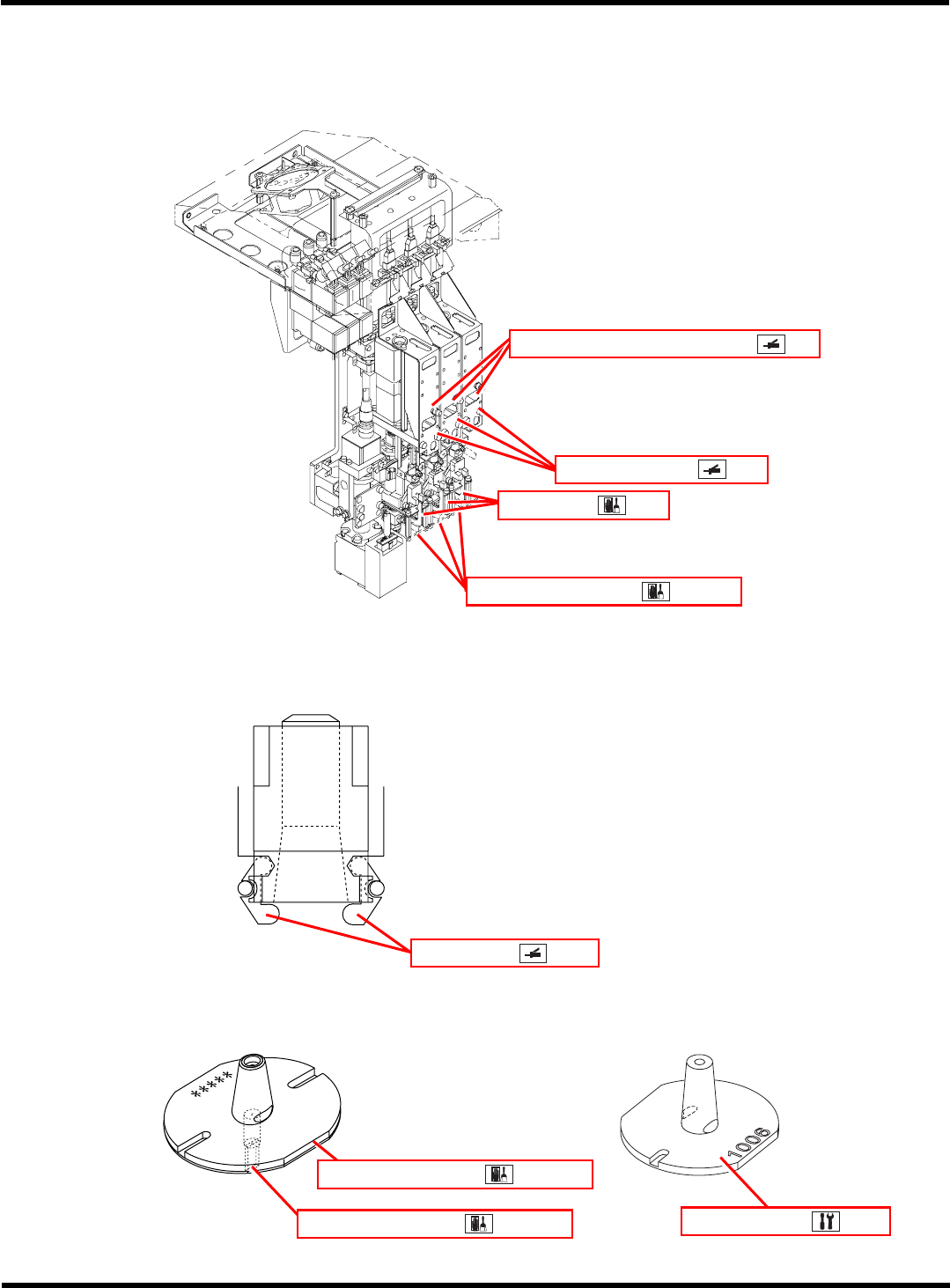 CM602-L 维修手册 1.1 维护的概要 Page 1-26 4. 吸嘴交换器 5. 6 连供料器搭载部 ∗ 这是仅限于连接直接托盘供料器 ( 选购件 ) 的 工作站上安装的供料器搭载部。 ) 6. 3D 传感器 ( 选购件 ) 7. 引线检查器 ( 选购件 ) EJM8A-C-MMC01-A01-01 4Z4C-494P 吸嘴反射板接触面 EJK1A-007E EJK1A-010E 切割装置 供料器安装面 空编带箱 EJM8A-0…
