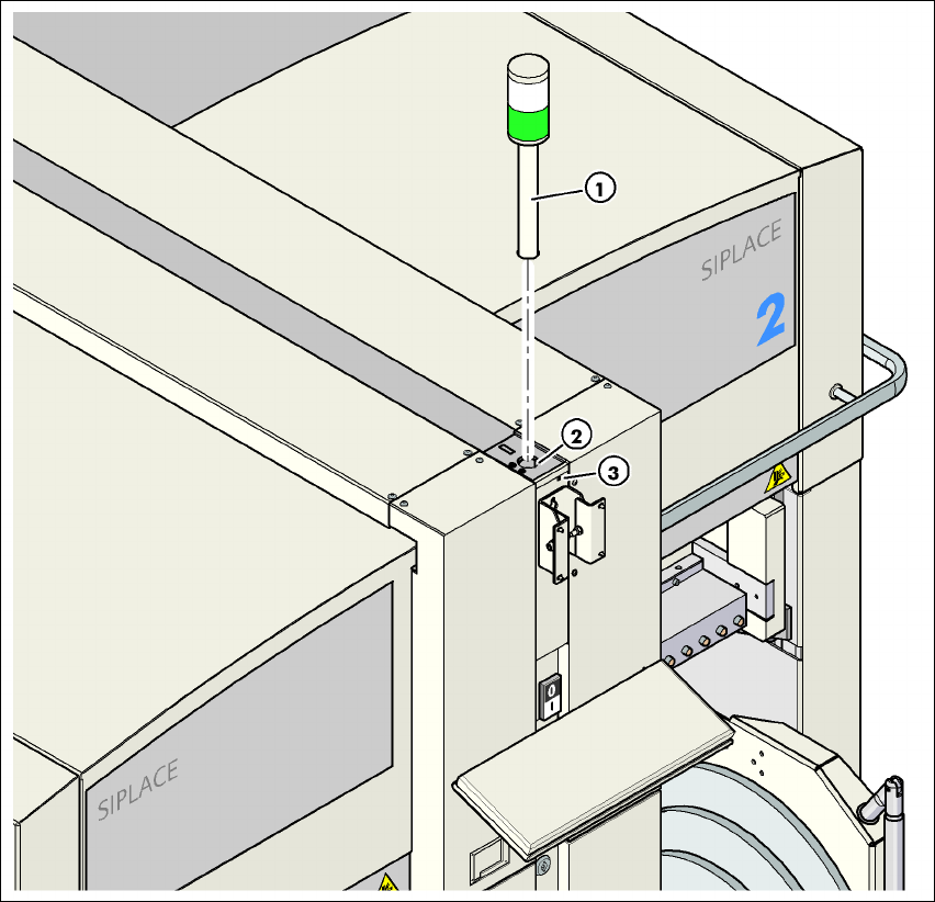 → 표시기 램프 케이블을 기본 장비 케이블에 연결합니다 .
