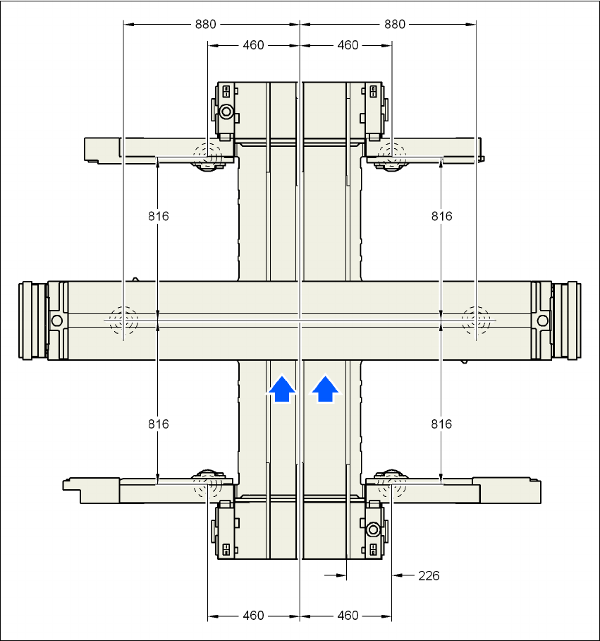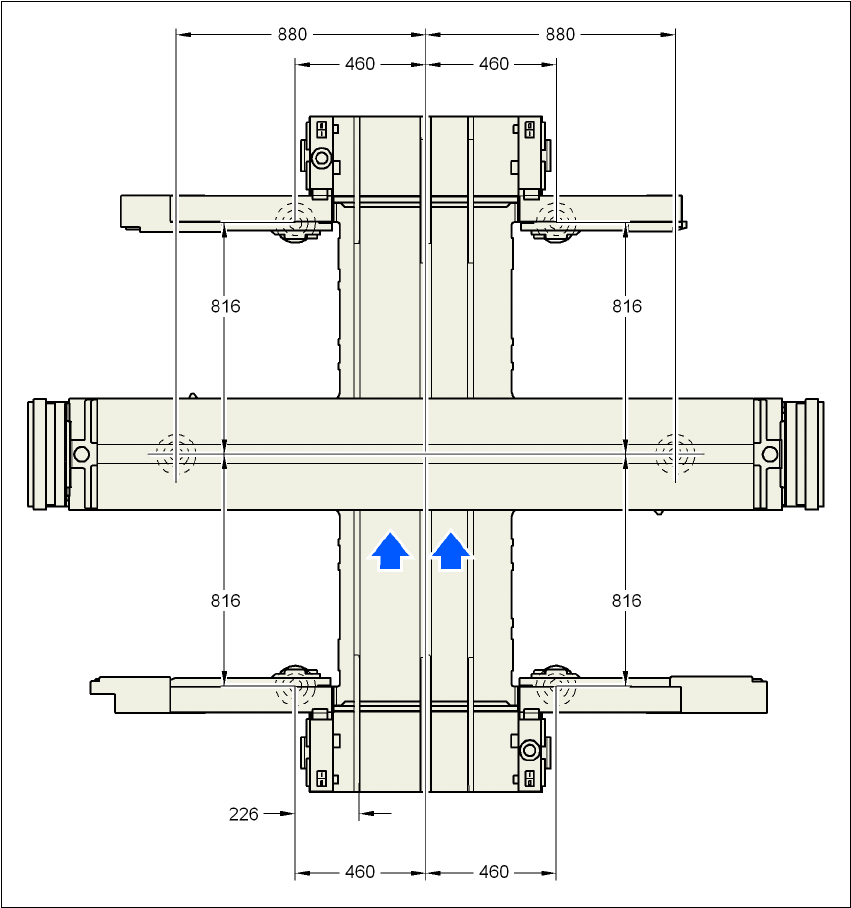 그림 4.3 - 24 PCB 이중 컨베이어에 대한 장비 바닥 여유 공간 및 고정 우측 컨베이어 가장자리 (mm 단위 )
