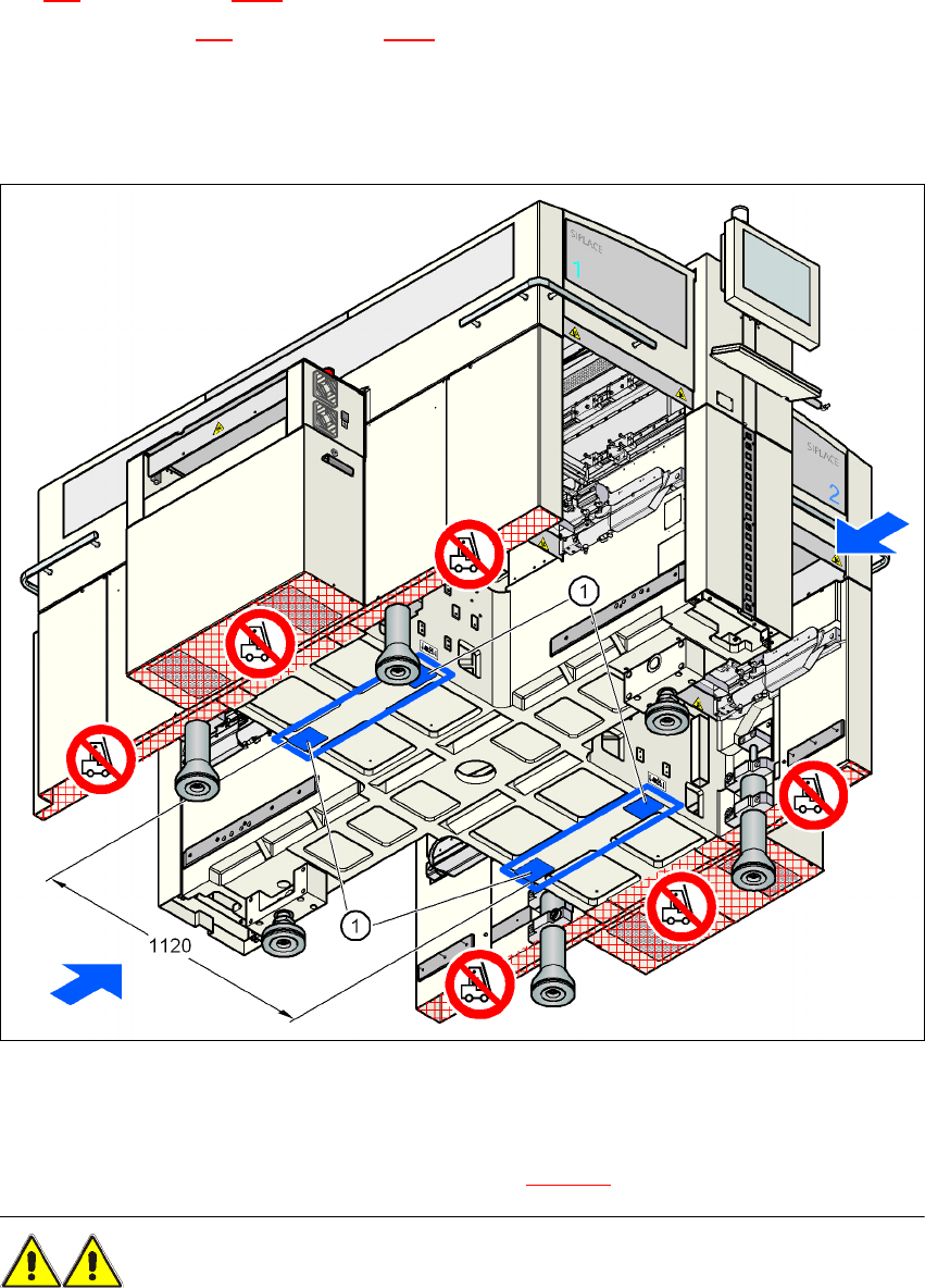 사용자 매뉴얼 SIPLACE D3 4 셋업 및 시운전 소프트웨어 버전 SR.605.xx 2008 년 7 월 한글판 4.3 장비 셋업 241 되돌릴 수 없는 장비 손상을 피하려면 장비를 들어올 리기 전에 다음 사항을 참고하 십시오 . – 포크 간 거리는 800 mm 에서 900 mm 사이가 되도록 해야 합니다 . 지게차의 삽입면은 그림 4.3 - 28 에 나와있습니다 . 접촉면 간 최대 거리는…