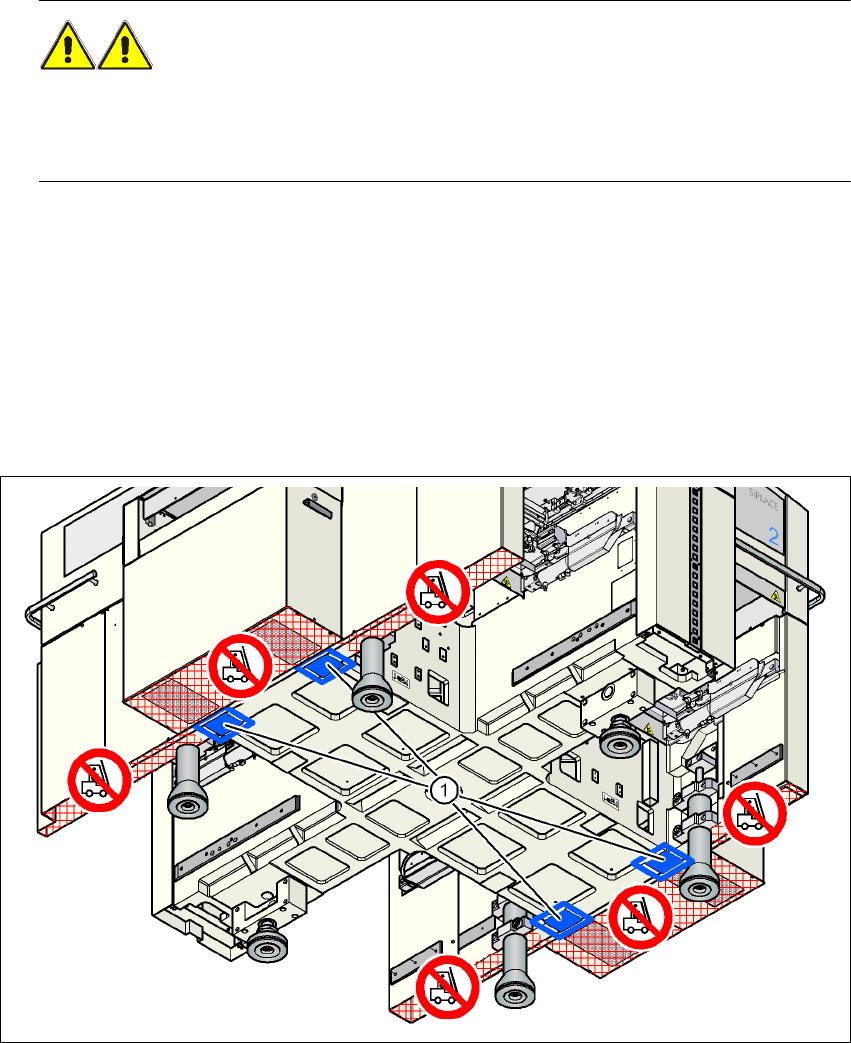 → 장비 프레임 아래에 에어쿠션 운반 시스템의 에어쿠션 4 개를 놓습니다 .