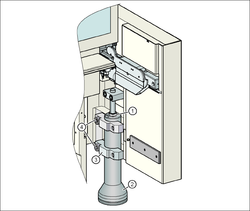 → 장비를 배치했으면 19 사이즈 앨런키를 사용하여 바깥쪽 장비 다리 ( 항목 3) 에 있는 클램프