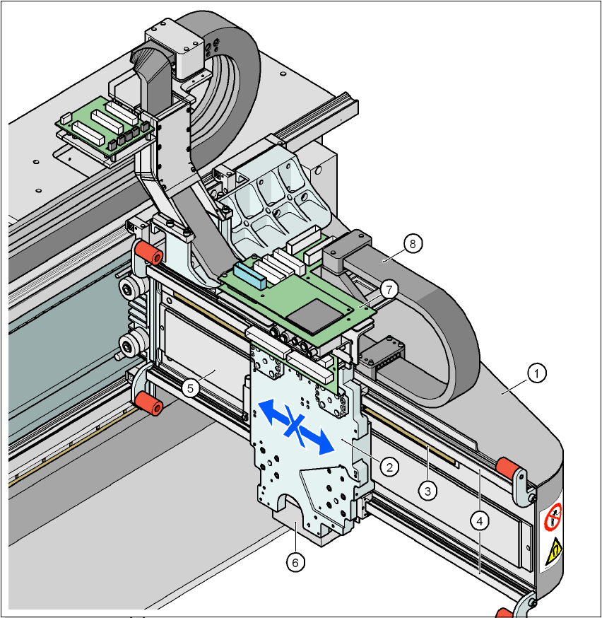 사용자 매뉴얼 SIPLACE D3 3 장비에 대한 기술 데이터 소프트웨어 버전 SR.605.xx 2008 년 7 월 한글판 3.6 갠트리 시스템 119 3.6.2 X 축 구 조 3 그림 3.6 - 2 X 축 구조 (1) 갠트리 암 (2) X 축 선형 모터가 있는 헤드 마운트 ( 주요부 ) (3) 직선 거리 측정 시스템 (4) 가이드 시스템 (5) 영구 자석 (X 축 선형 모터의 보조부 ) (…