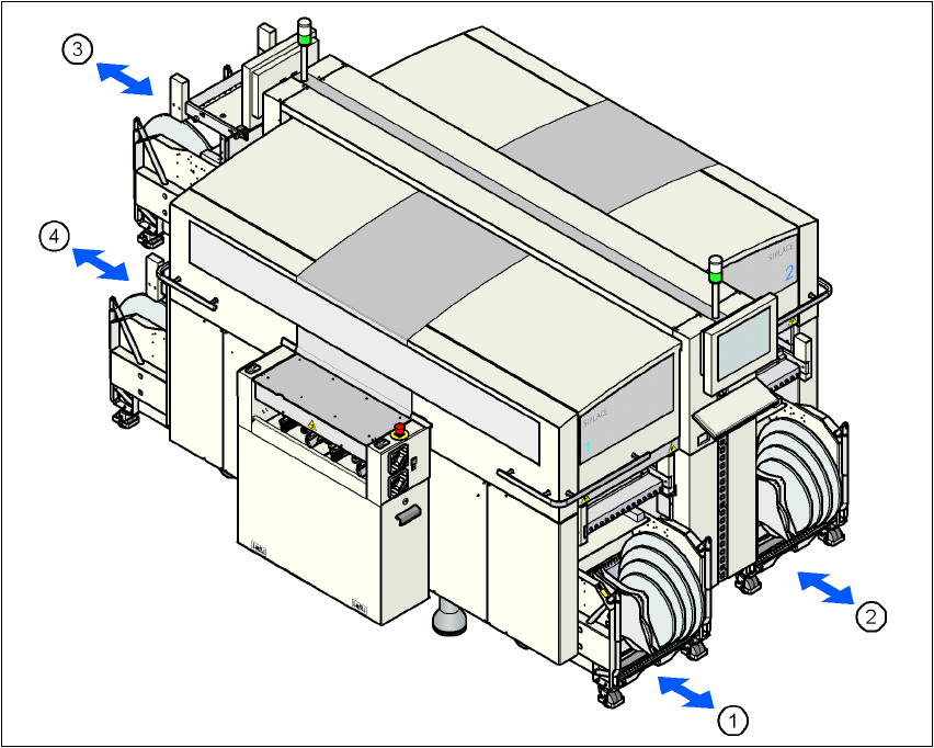 최대 4 개의 컴포넌트 트롤리를 장비에 도킹시킬 수 있습니다 . 해당 위치는 아래 그림에 표시되