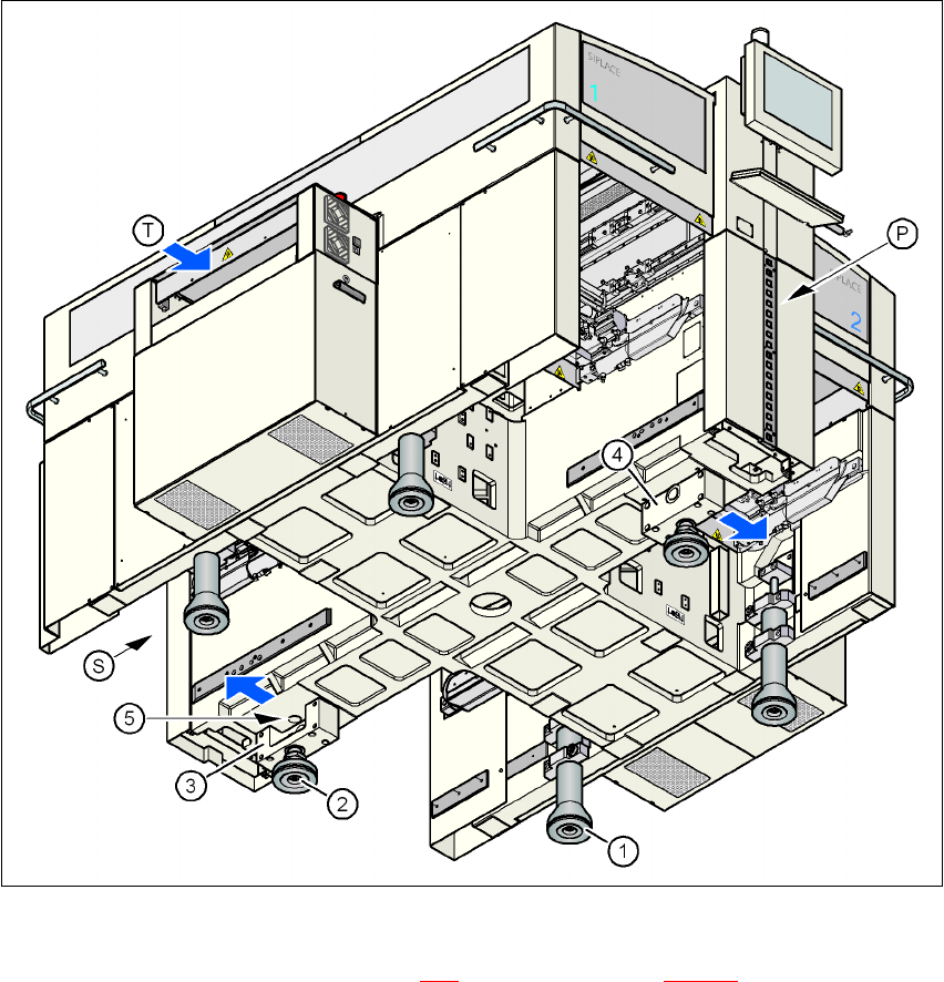 사용자 매뉴얼 SIPLACE D3 4 셋업 및 시운전 소프트웨어 버전 SR.605.xx 2008 년 7 월 한글판 4.3 장비 셋업 199 4 그림 4.3 - 3 장비 다리 4 (1) 바깥쪽 장비 다리 , 4 x, 두 가지 버전 ( 198 페이지에 있는 그림 4.3 - 2 참 조 ) (2) 중간 장비 다리 , 2 x (3) 전원 공급기 측면에 있는 스페이서 (4) 공압 장치 측면에 있는 스페…