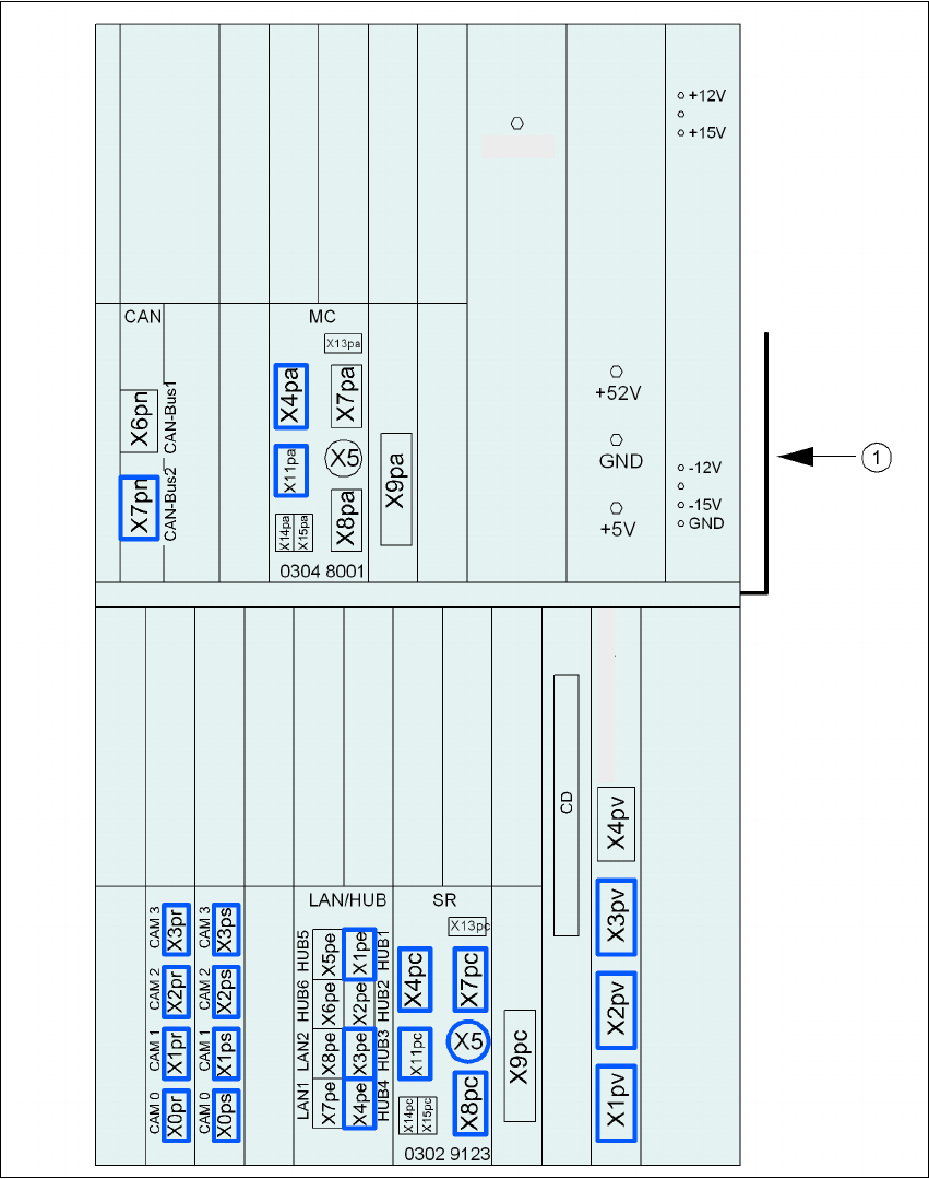 사용자 매뉴얼 SIPLACE D3 4 셋업 및 시운전 소프트웨어 버전 SR.605.xx 2008 년 7 월 한글판 4.3 장비 셋업 227 4 그림 4.3 - 19 컴퓨터 장치 , 후면 판 - 플러그 연결 (1) 케이블 가이드 플레이트 팬 배터리 +3.6V