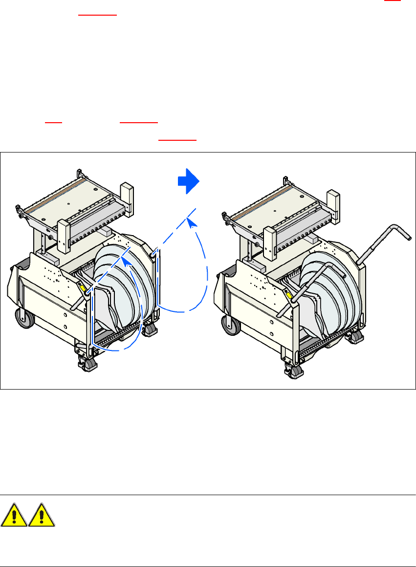 → 양 손으로 핸들을 잡고 컴포넌트 트롤리를 장비에서 빼냅니다 .