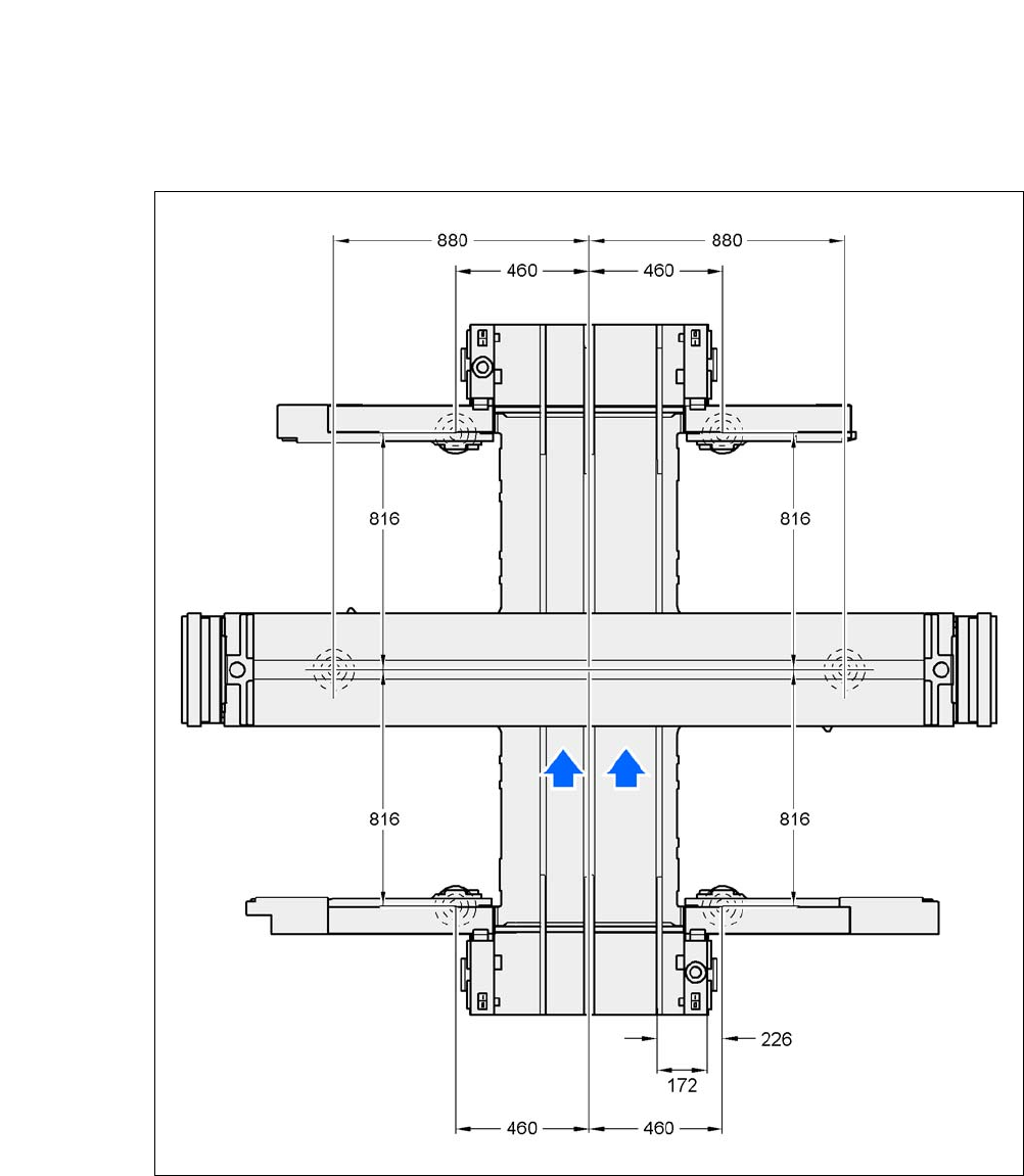 Abb. 3.4 - 10 Abstandsmaße der Maschinenfüße und der festen linken Transportkante des LP-Doppeltransports
