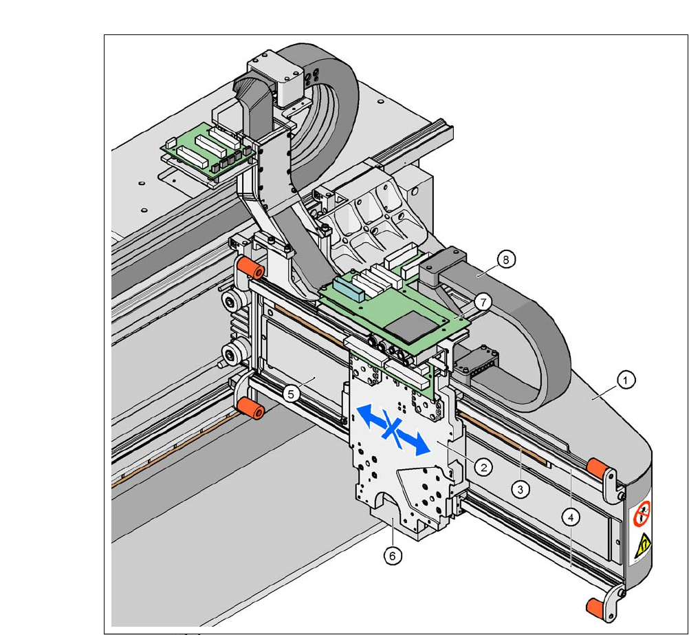 Betriebsanleitung SIPLACE CA-Serie 3 Technische Daten Ausgabe 08/2011 DE 3.12 Portale 215 3.12.3 Aufbau der X-Achse 3 Abb. 3.12 - 3 Aufbau der X-Achse (1) Portalausle ger (2) Kopfhalterung mit X-Linear -Motor (P rimärtei…