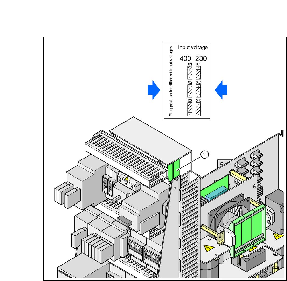 Abb. 4.4 - 5 Lage von Platine und Stecker für die Einschaltstrombegrenzung