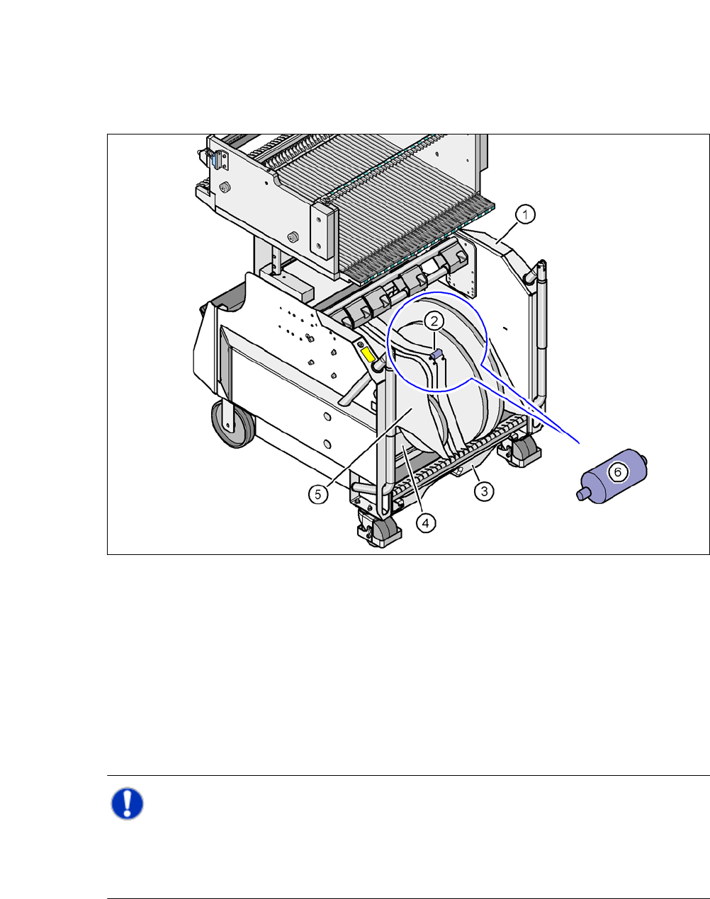 Kontrollieren Sie, ob der Bereich des Abholfensters (Pos. 3 in Abb. 5.5 - 2) frei von losen