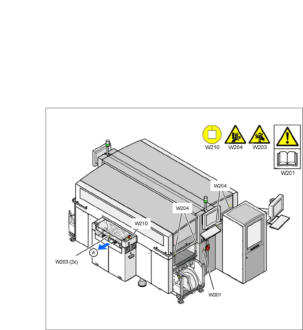 2.2.1 Warnschilder W201, W203, W204 und W210 am Bestückautomaten