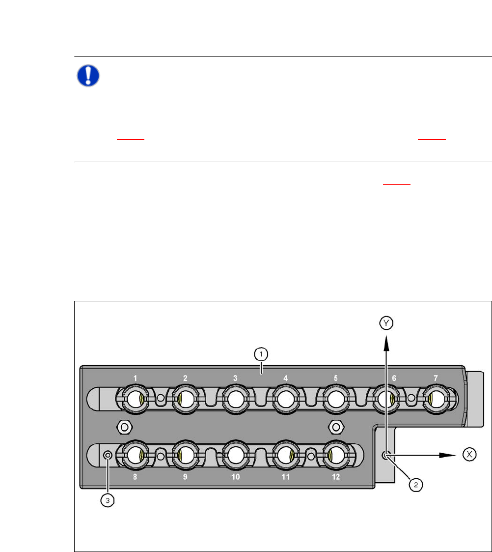 Abb. 7.1 - 9 Pipettenmagazin - Garagennummerierung, Marken zur Bestimmung der Position und der Winkellage