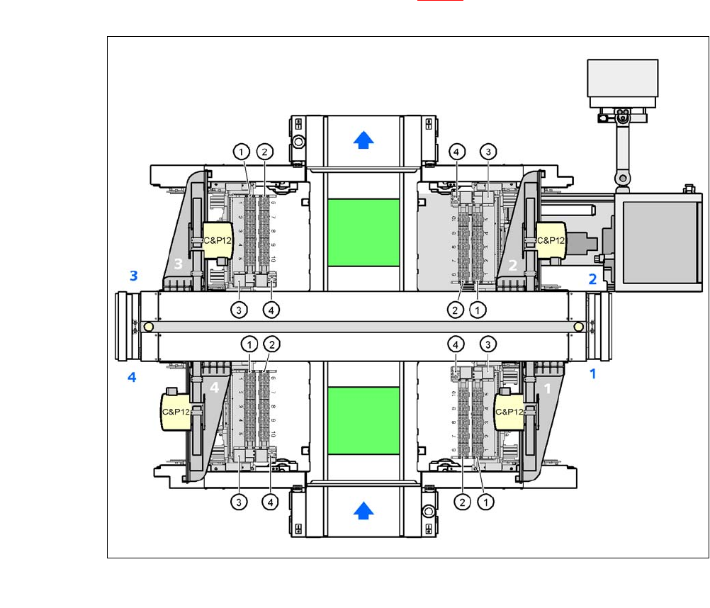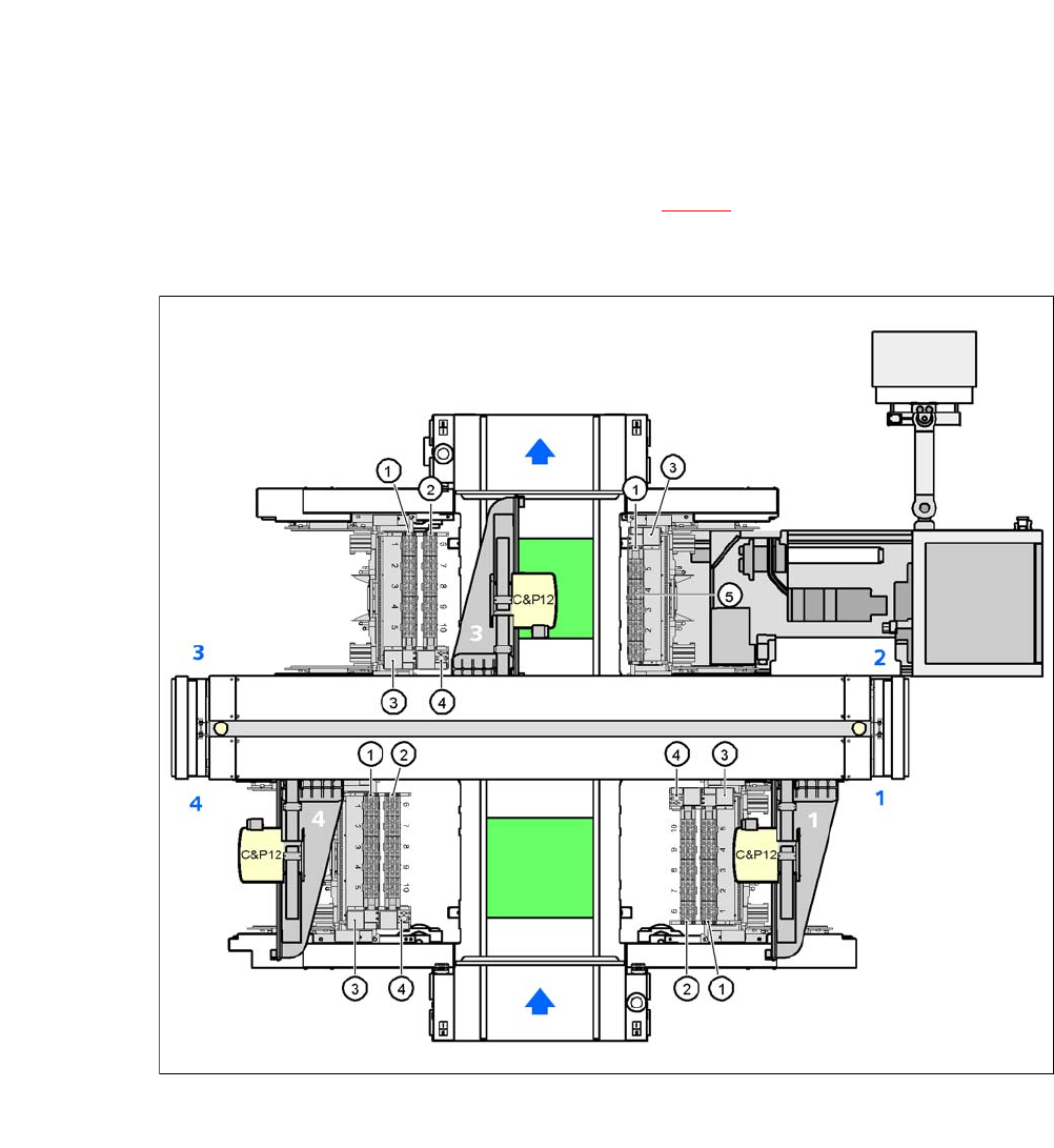 Betriebsanleitung SIPLACE CA-Serie 7 Stationserweiterungen Ausgabe 08/2011 DE 7.1 Pipettenwechsler 435 7.1.3.1 Lage der Pipettenwechsler für den C&P12 CA-Kop f am CA4-Automaten An den S tellplätzen 1, 2, 3 und 4 könn…