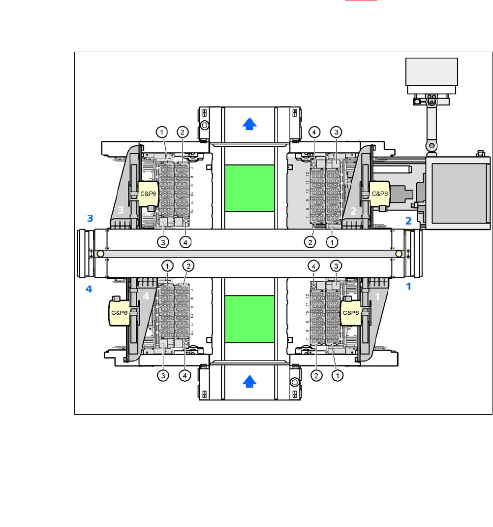 7.1.4.1 Lage der Pipettenwechsler für den C&P6CA-Kopf am CA4-Automaten