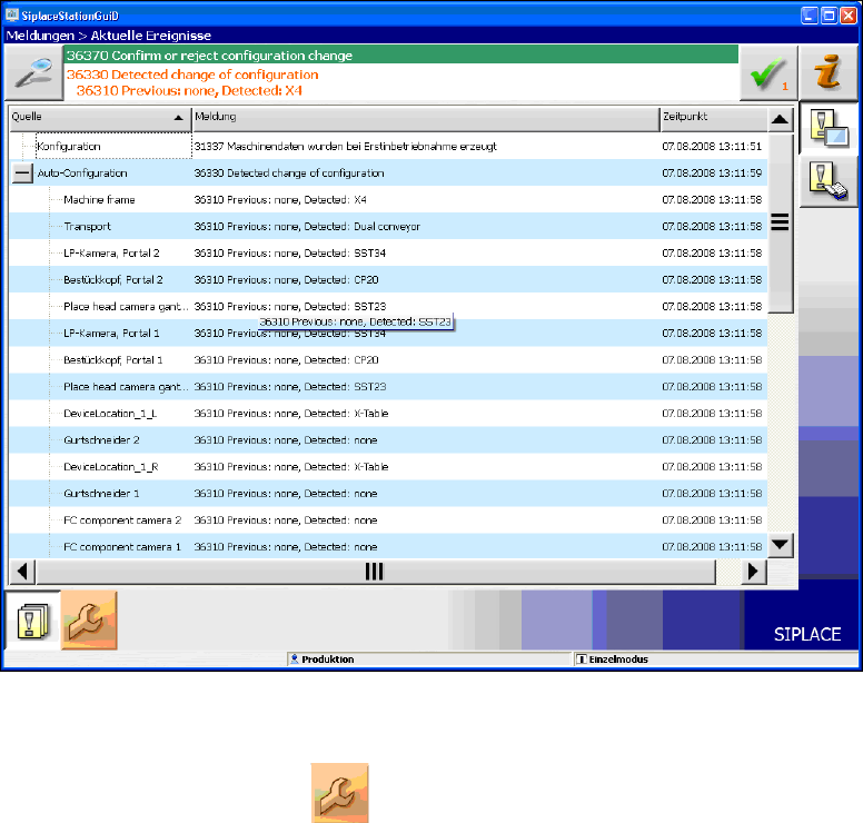 Grundsätzlich wird der Bediener stets aufgefordert, Konfigurationsänderungen zu bestätigen oder