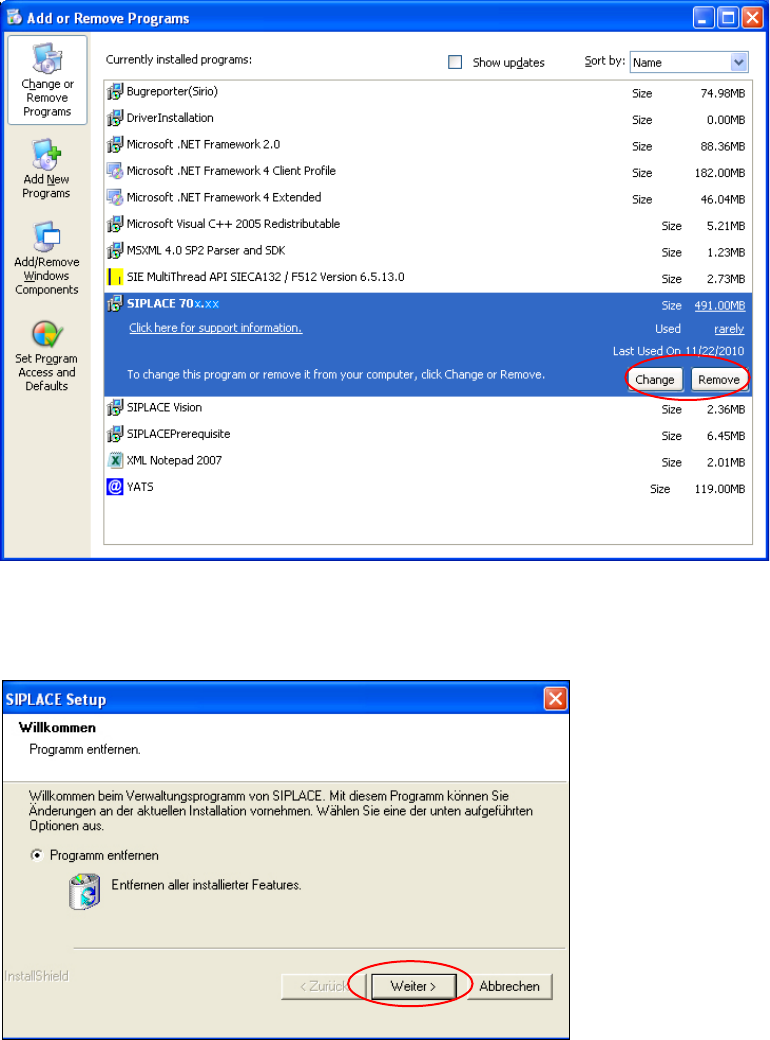 8 Deinstallation der SIPLACE-Software