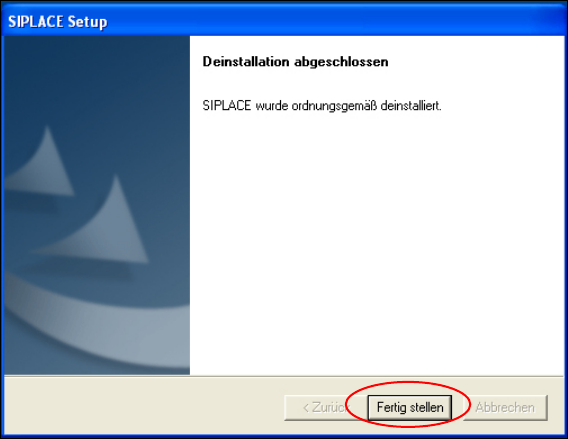 Die SIPLACE-Software ist nun ordnungsgemäß deinstalliert.