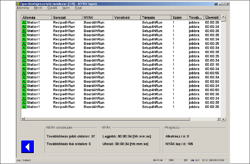 Lista formájában megjelenik a megfigyelési időszakban legyártott összes NYÁK és teljesítmény