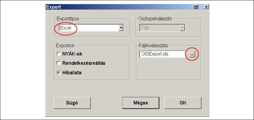 Æ Válassza ki az Exportok, mezőben az exportálni óhajtott adattípusokat.