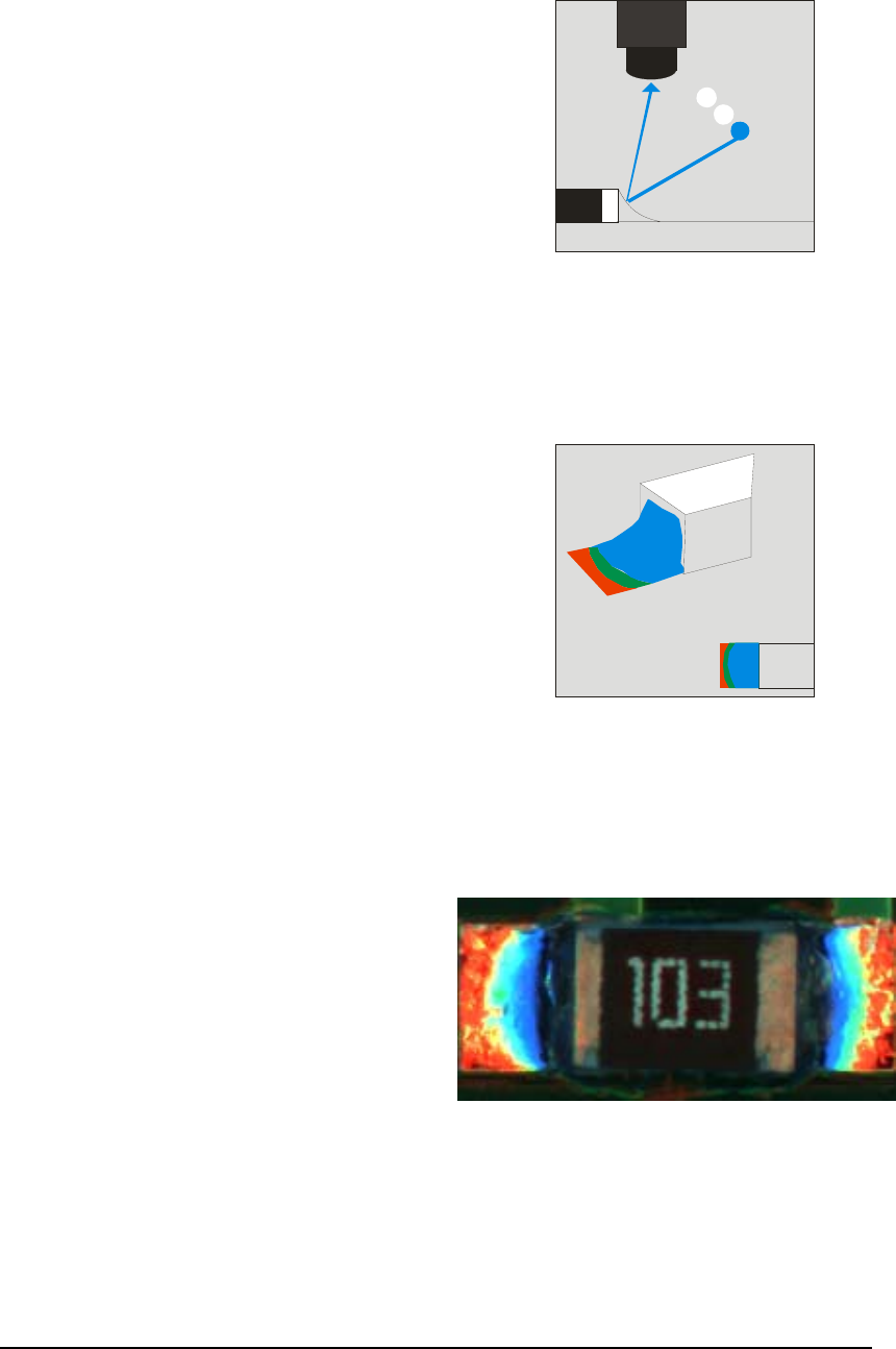 摄像机对急倾斜焊锡表面部分摄取到蓝色