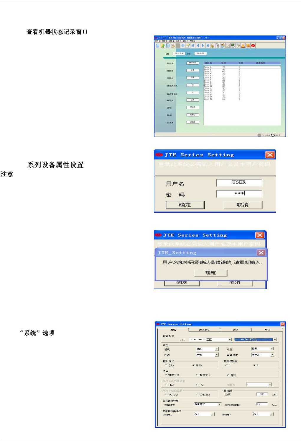 据机器实际情况进行设置。此设置软件不能与 JTE