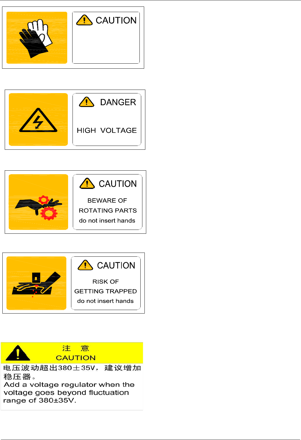 在操作时特别要注意的地方,本设备上都贴有警告标示,下页图为所有警告标示的介绍说明,请仔细阅读;