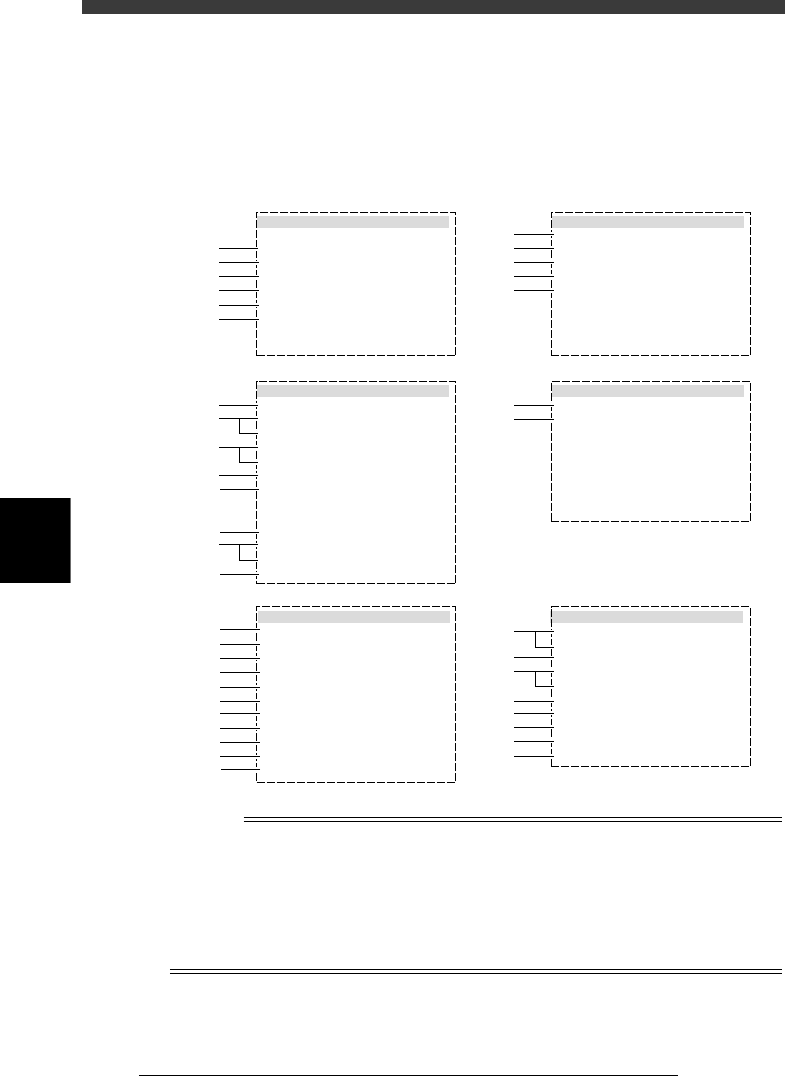 When setting the parameters shown in the sub-windows above, use the number keys to set