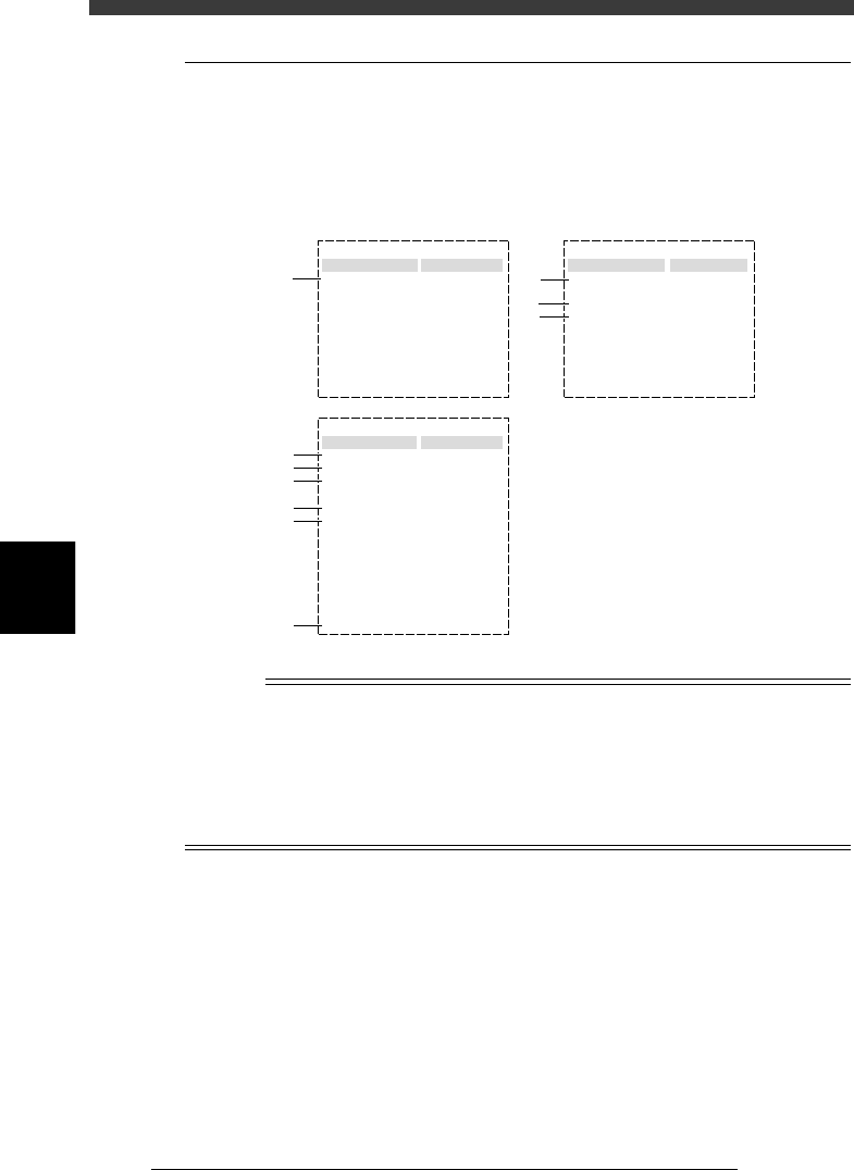 When setting the parameters shown in the sub-windows above, use the number keys to set