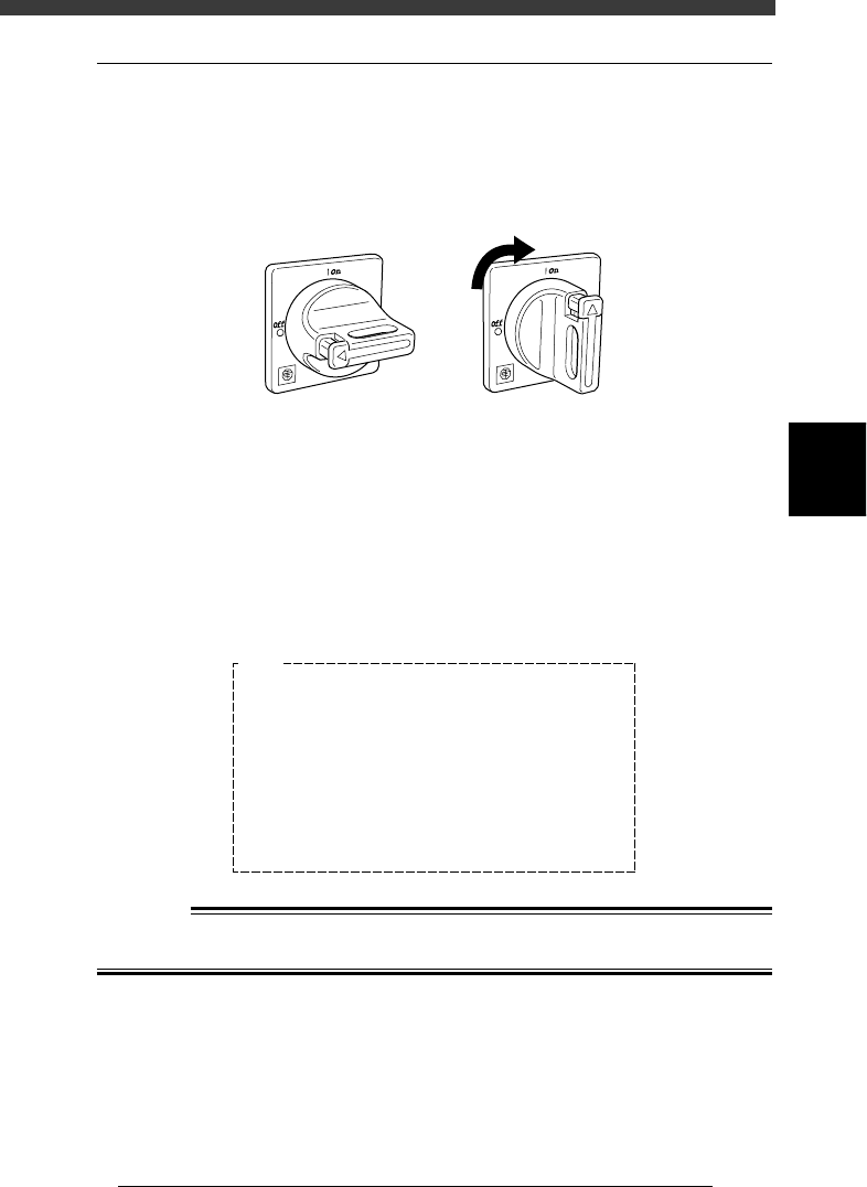 4 -7 EPD8013110 Operation Chapter 4 4 Daily operation 3.1 T urning the power ON 1 T urn the main power ON. T urn on the main power switch at the front lower right of the machine, by turning it to the right. The machine b…