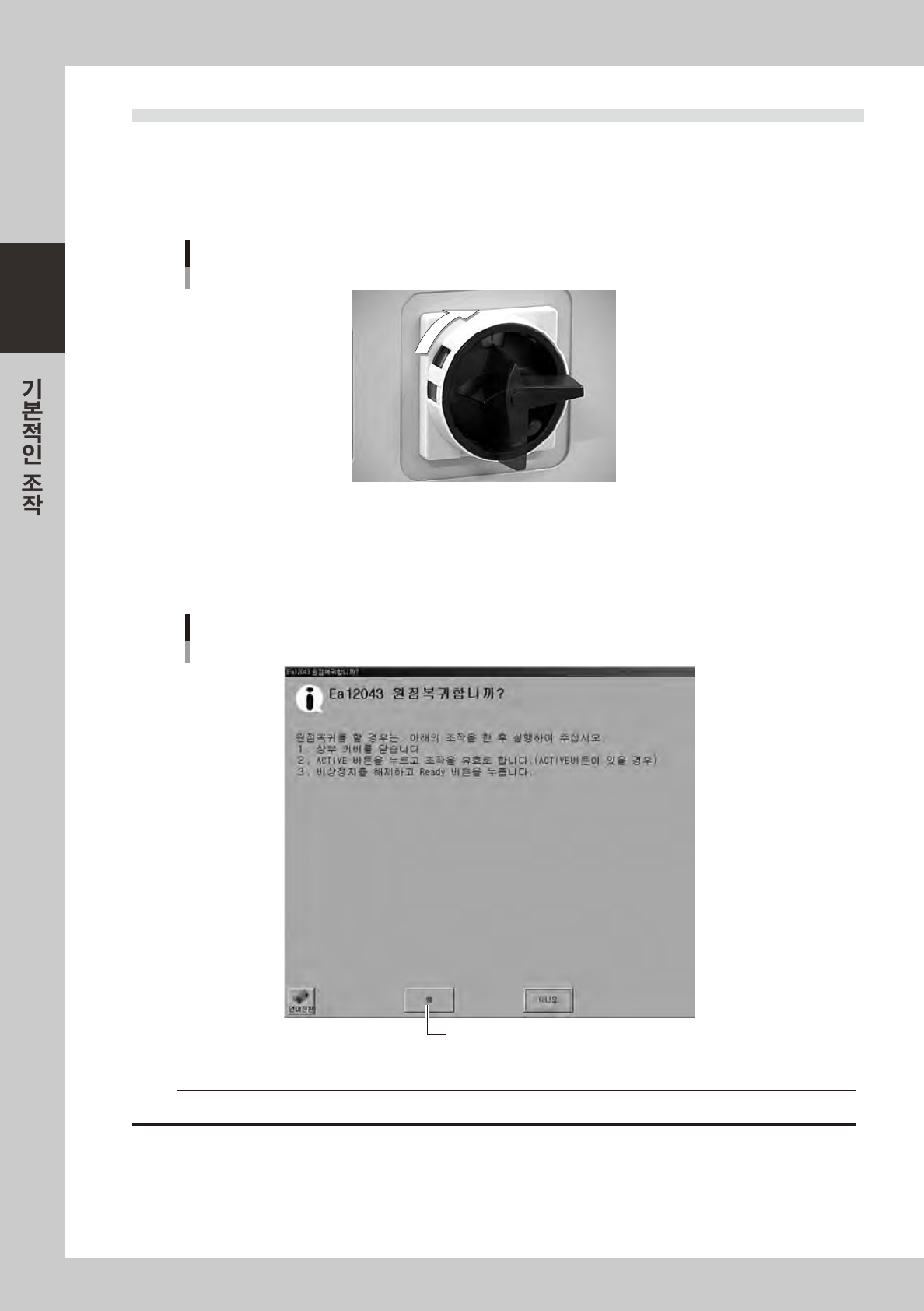 [예]를 누르면 원점복귀가 실행됩니다