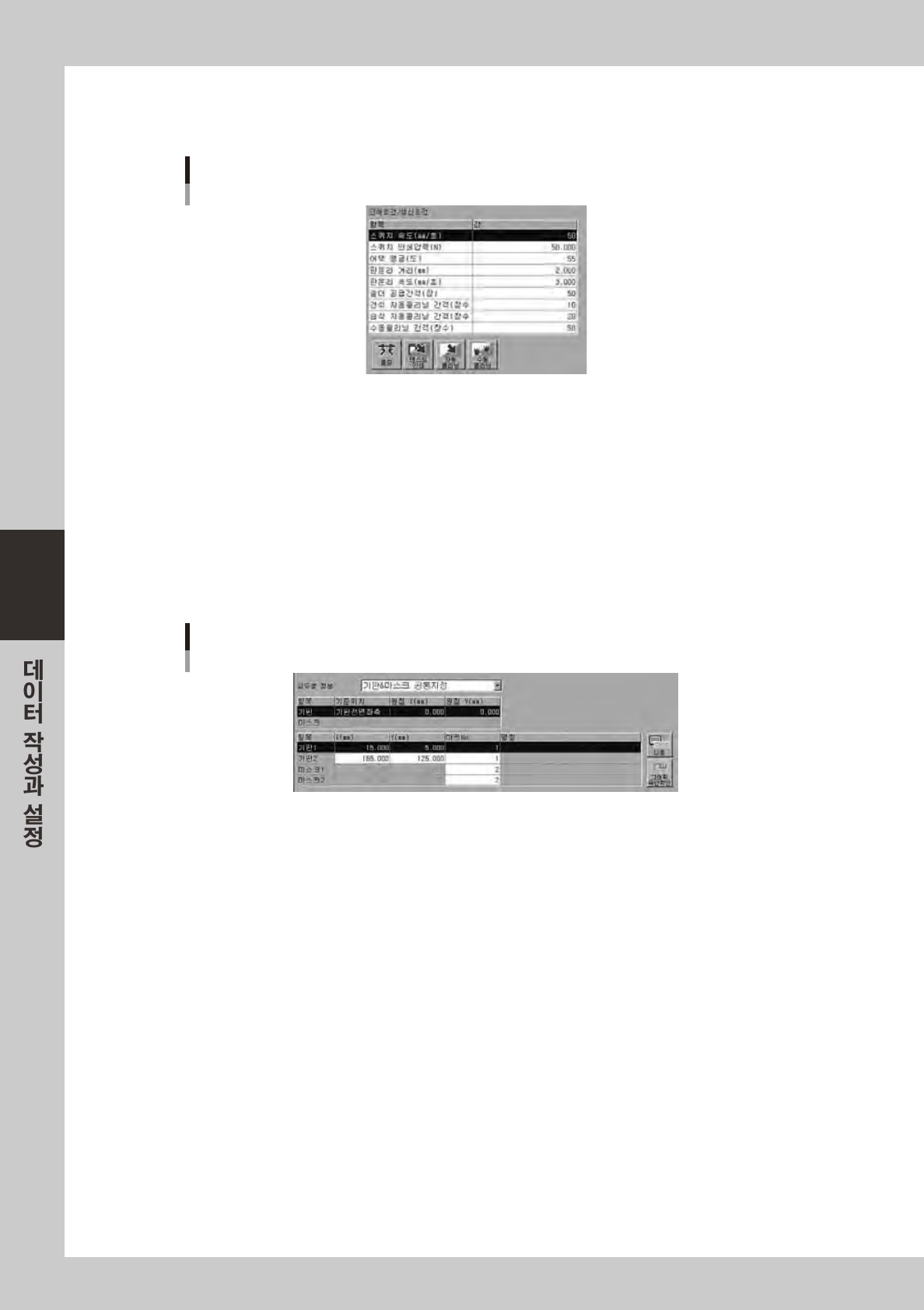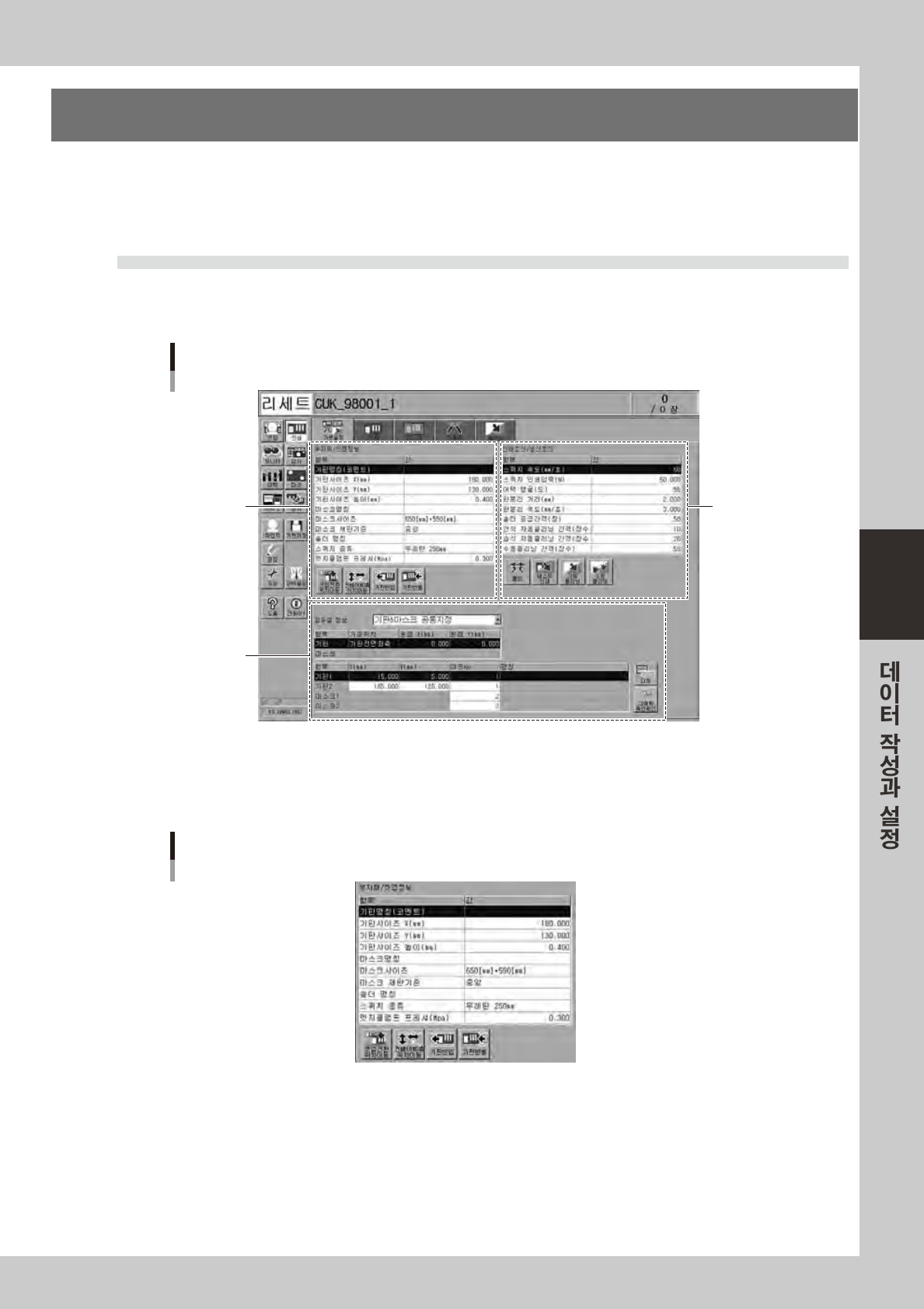 「기판」「마스크」「스퀴지」내의항목에서주로셋업에관계되는것이추출되어있습니다 .