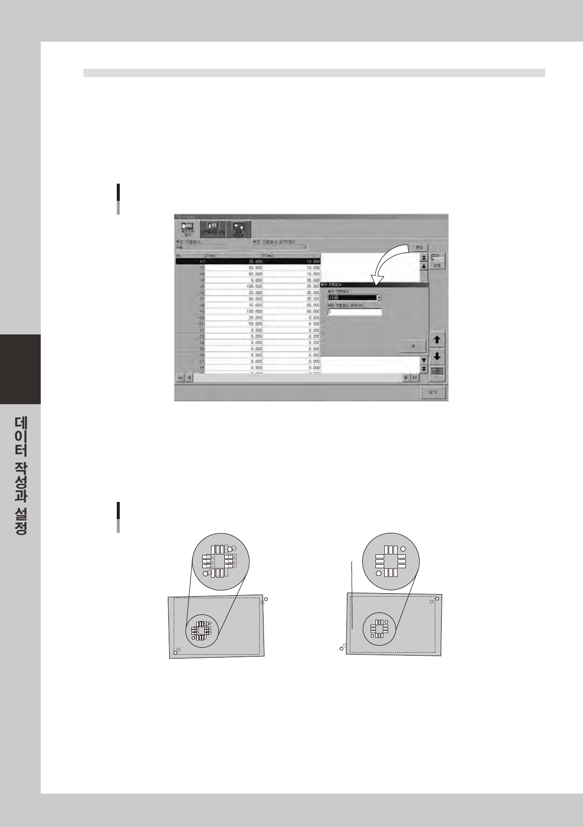 「육안기판검사」탭화면에서는솔더인쇄후육안검사를할기판상의좌표를미리입력할수있습니다 .( 본장「9. 테스트