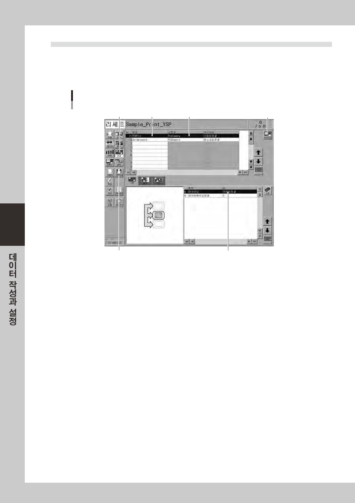 버튼에리어의 [ 마크 ] 버튼을 누르면 , 아래 그림과 같이 마크화면이 열립니다 . 화면상부의 데이터 No.행에