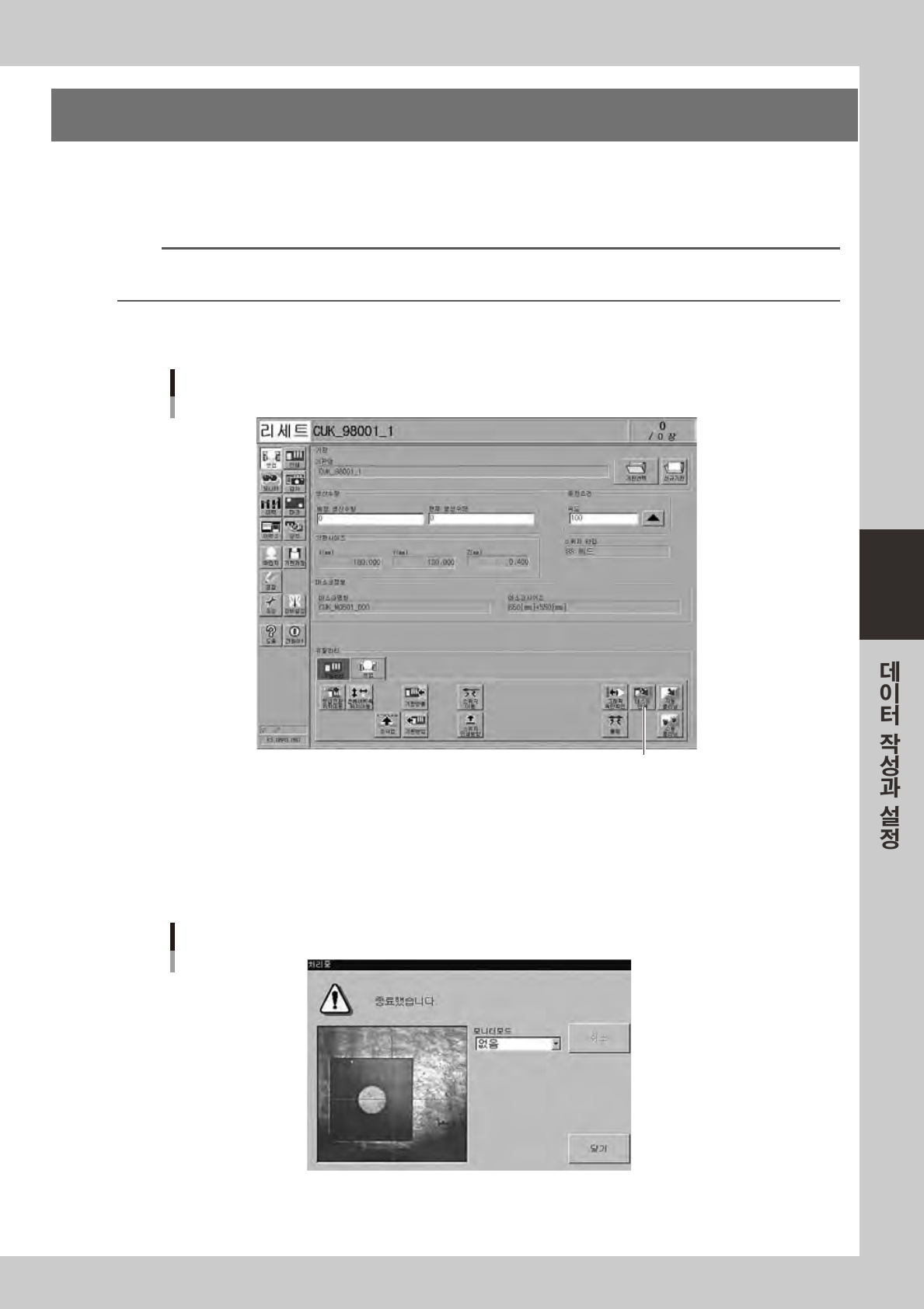 「셋업」화면의[ 기판반출 ] 버튼을눌러서 ,기판을반출시켜주십시오 .