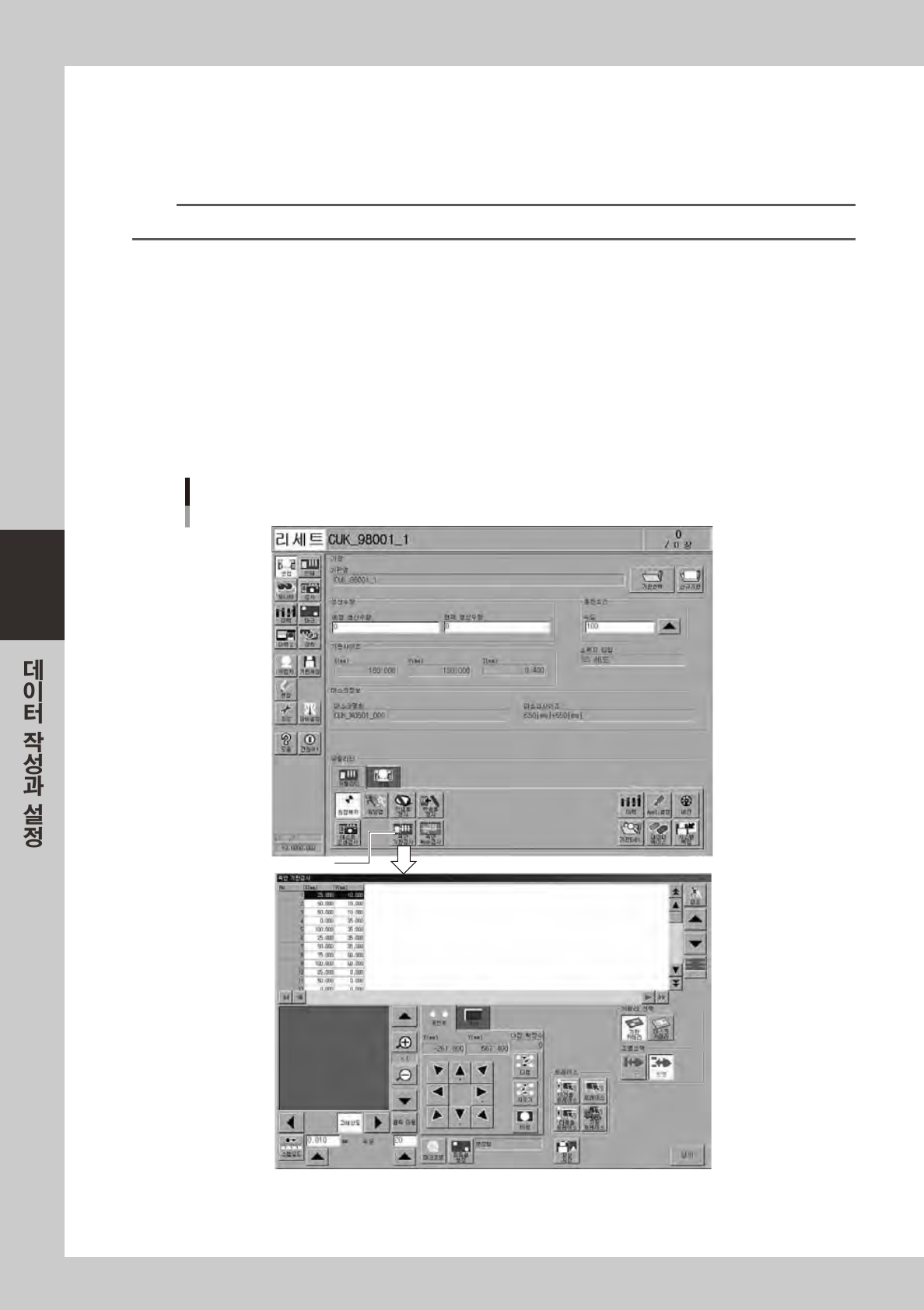 1. [ 스퀴지 ]-[ 그래픽위치맞춤 ] 버튼을누르고 ,「그래픽위치맞춤」화면에서위치맞춤할좌표를선택