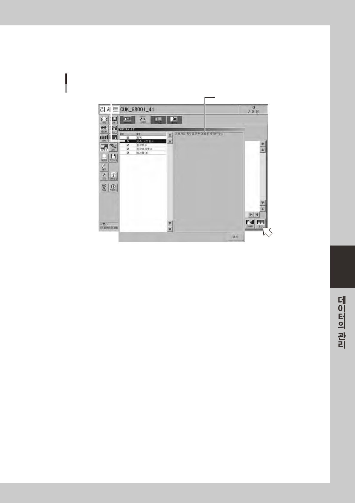 화면왼쪽의항목을선택하면 ,화면오른쪽에선택한항목의내용이표시됩니다 .