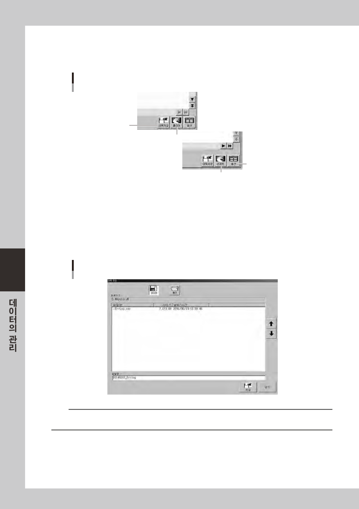 현재표시하고있는탭의이력데이터 ( 시스템내에기록되어있는모든데이터 ) 를 ,USB 메모리나네트워크드라이브등